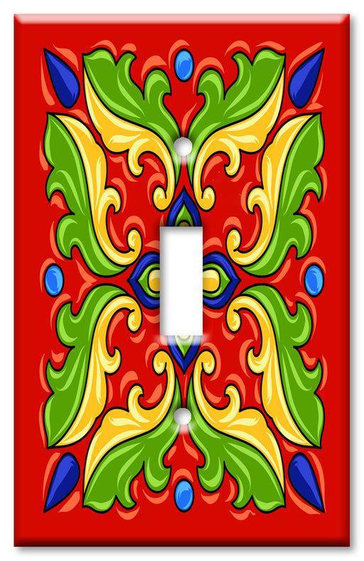 View full detailsDecorative Printed Switch Plate - Electrical Switch Cover Wall Plate by Art Plates - Red / Green Mexican Talavera Tile Print