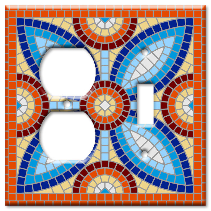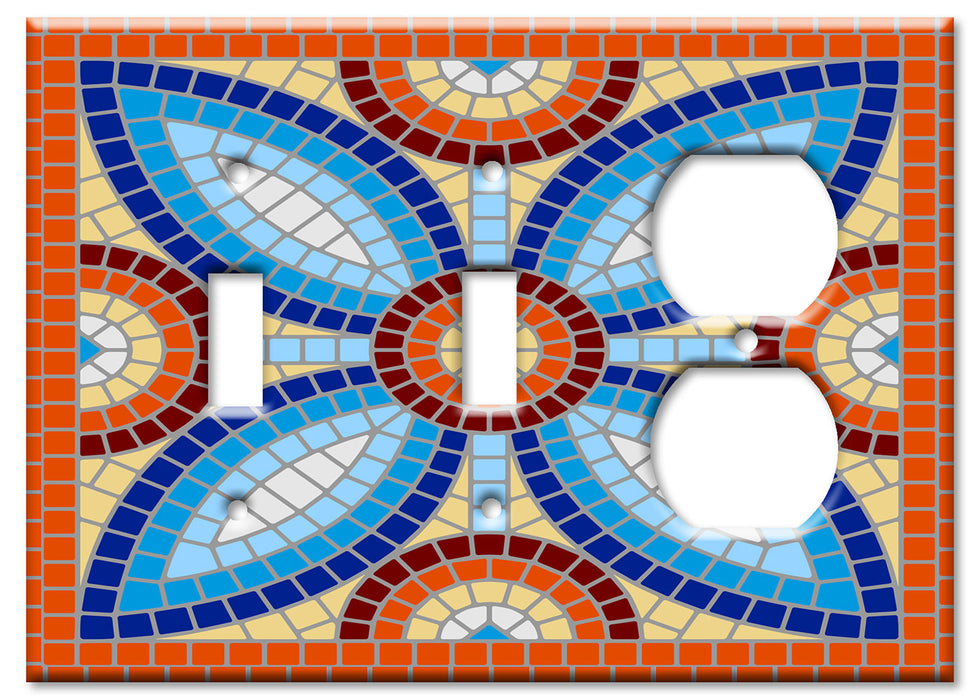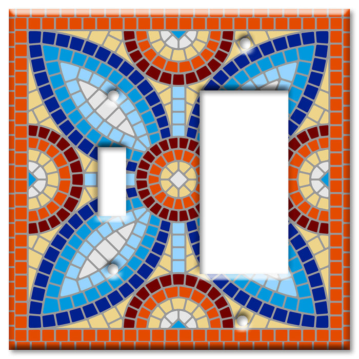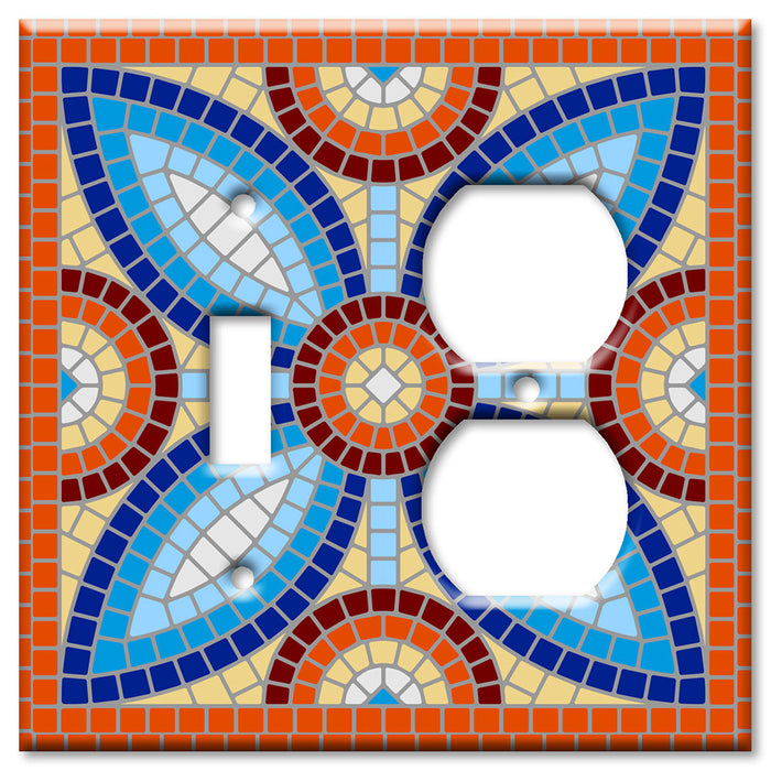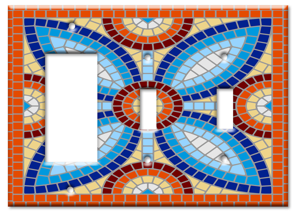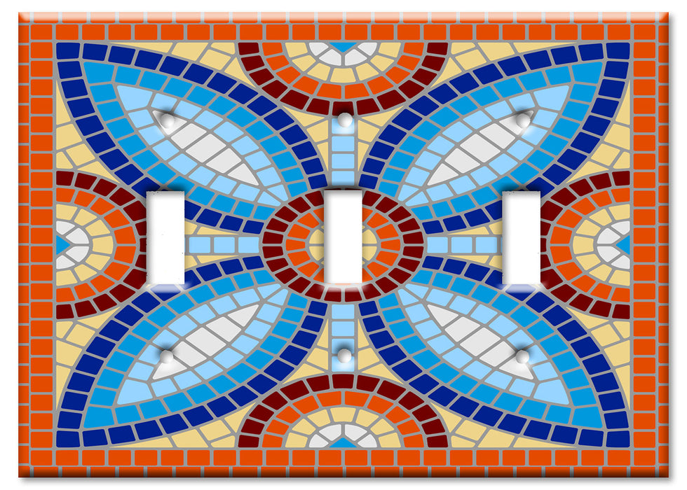 Decorative Printed Switch Plate - Electrical Switch Cover Wall Plate by Art Plates - Orange Spanish Mosaic Tile Print - 1 Gang Toggle