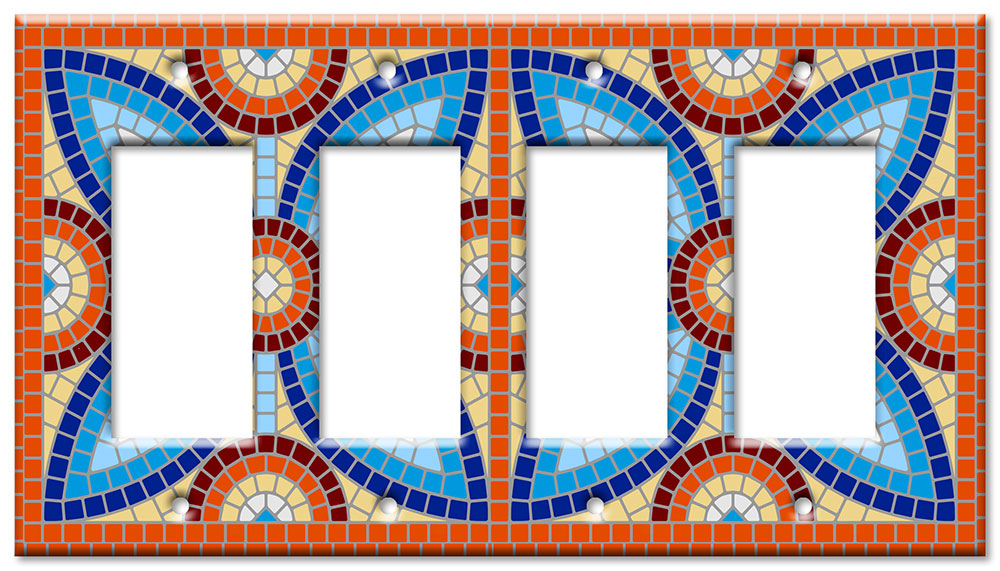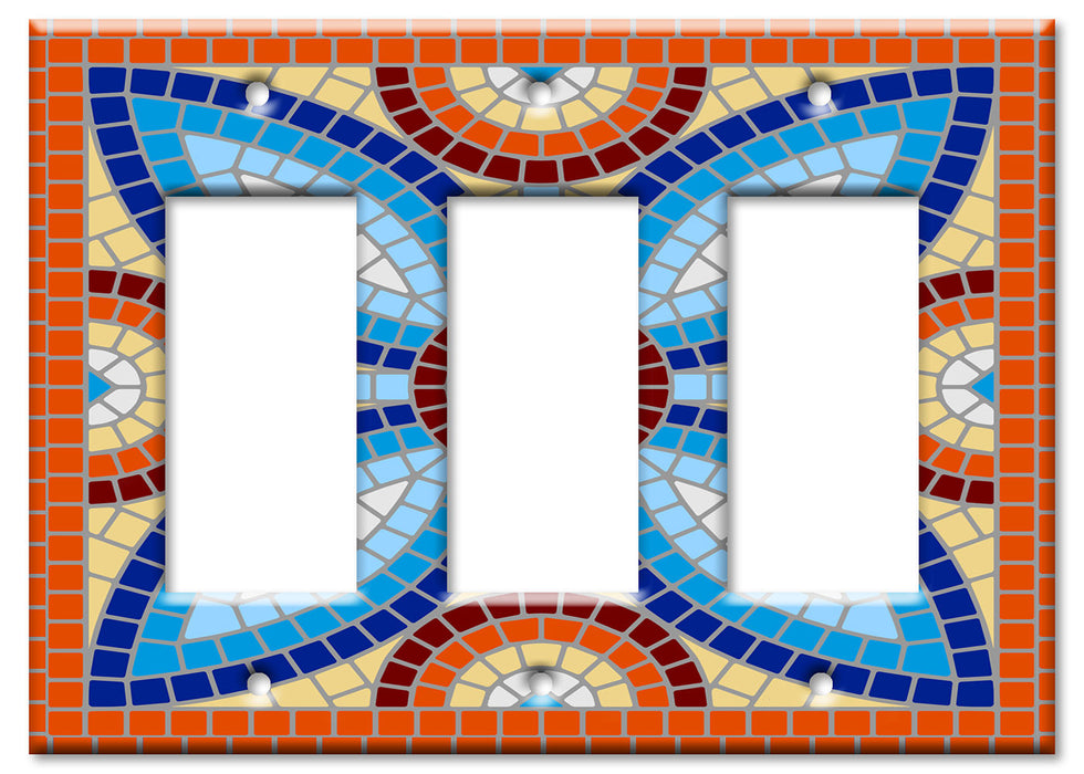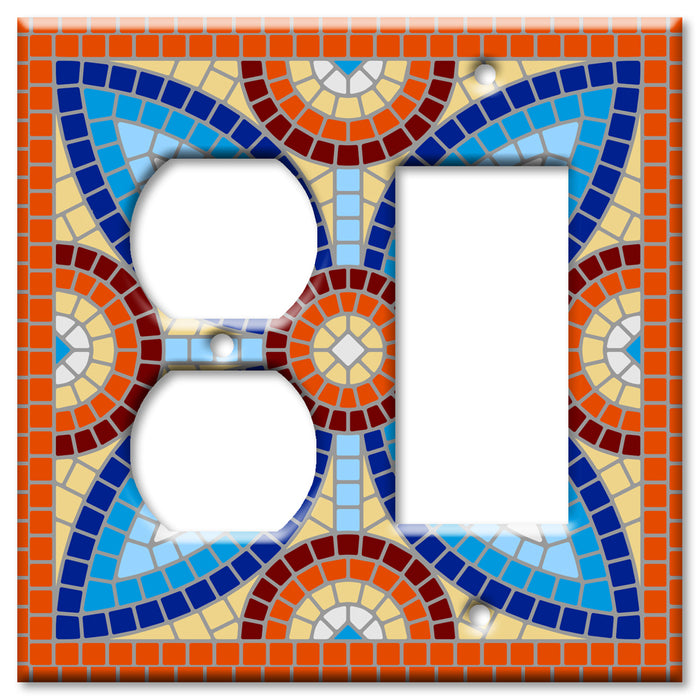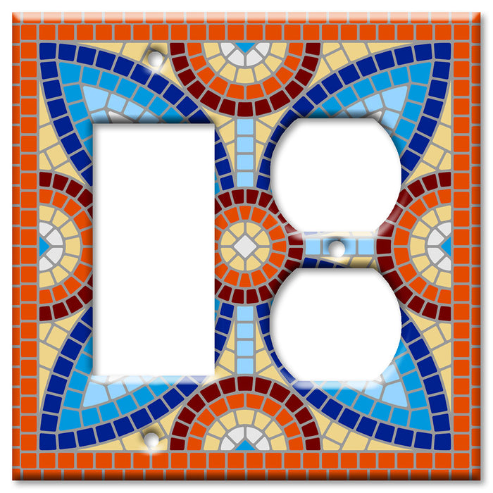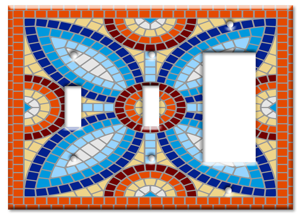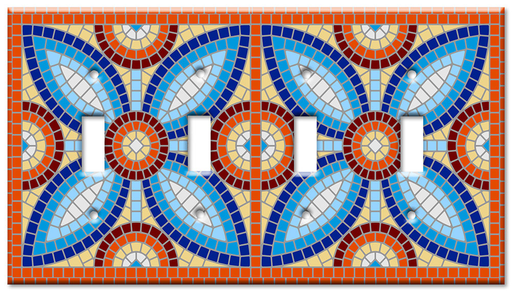 Decorative Printed Switch Plate - Electrical Switch Cover Wall Plate by Art Plates - Orange Spanish Mosaic Tile Print - 1 Gang Toggle