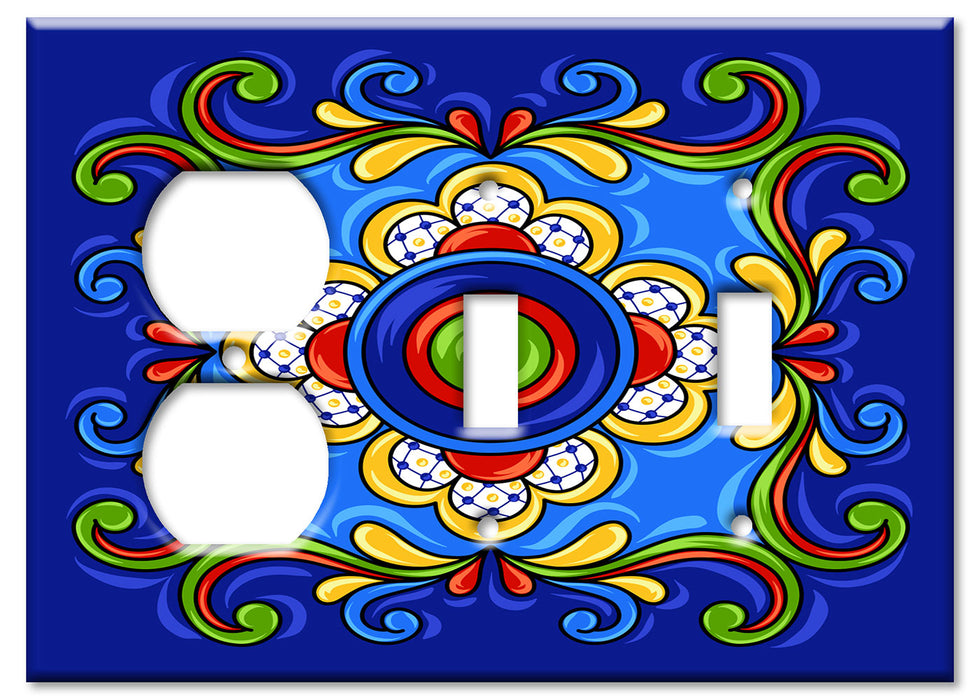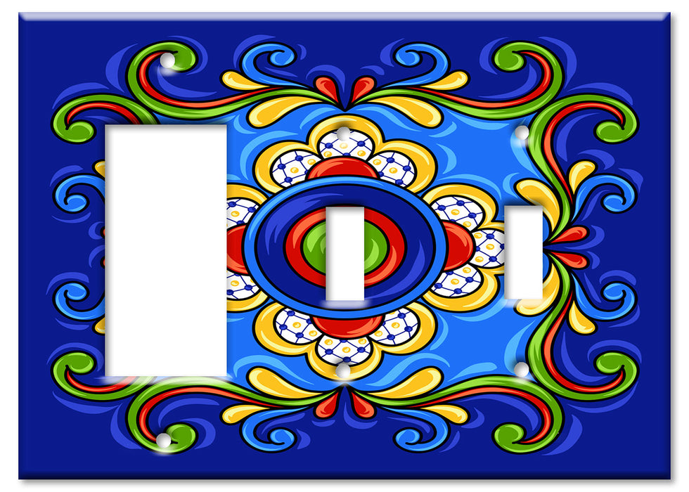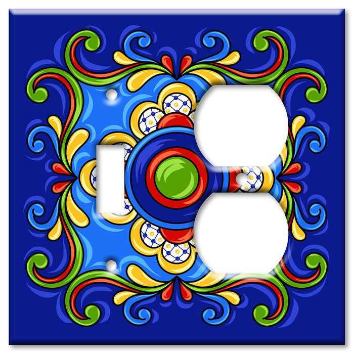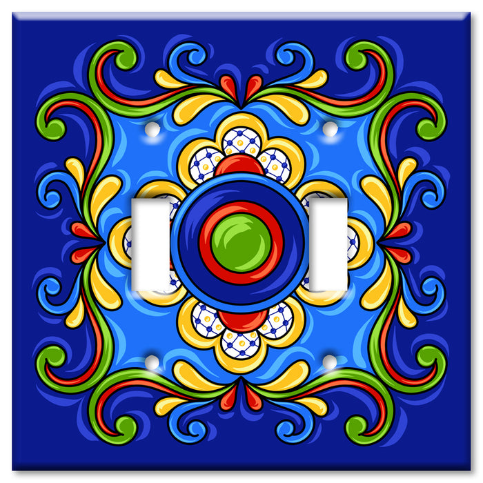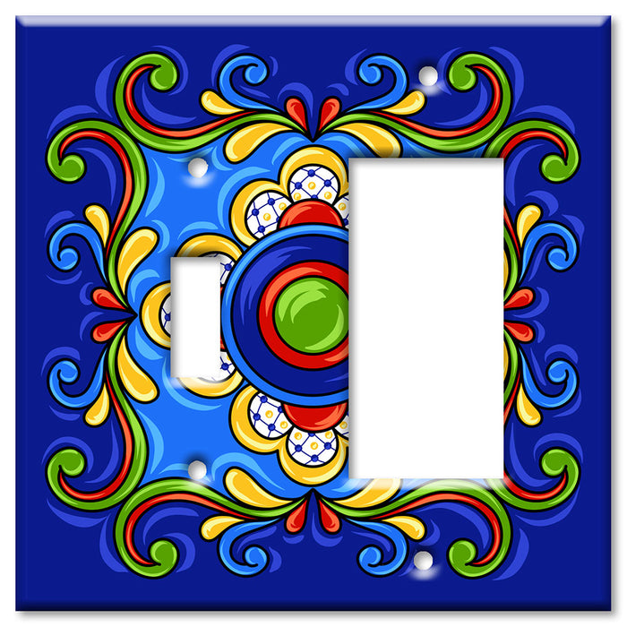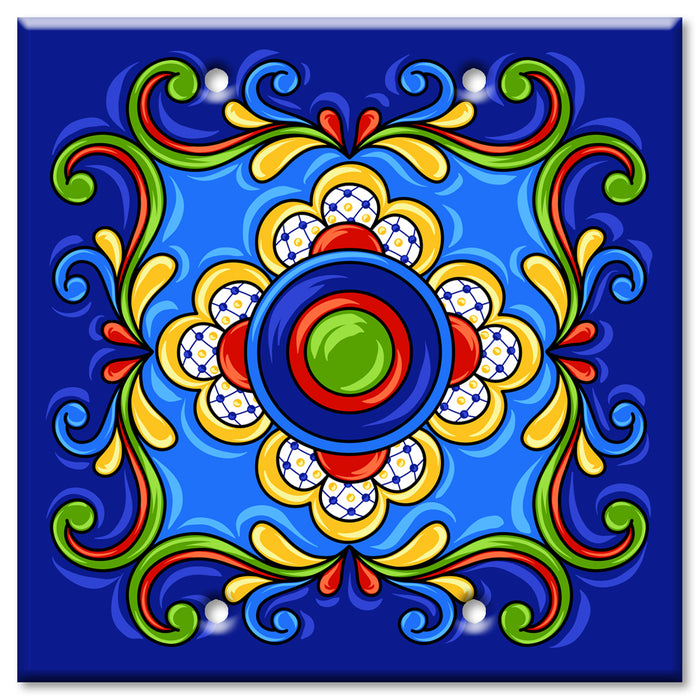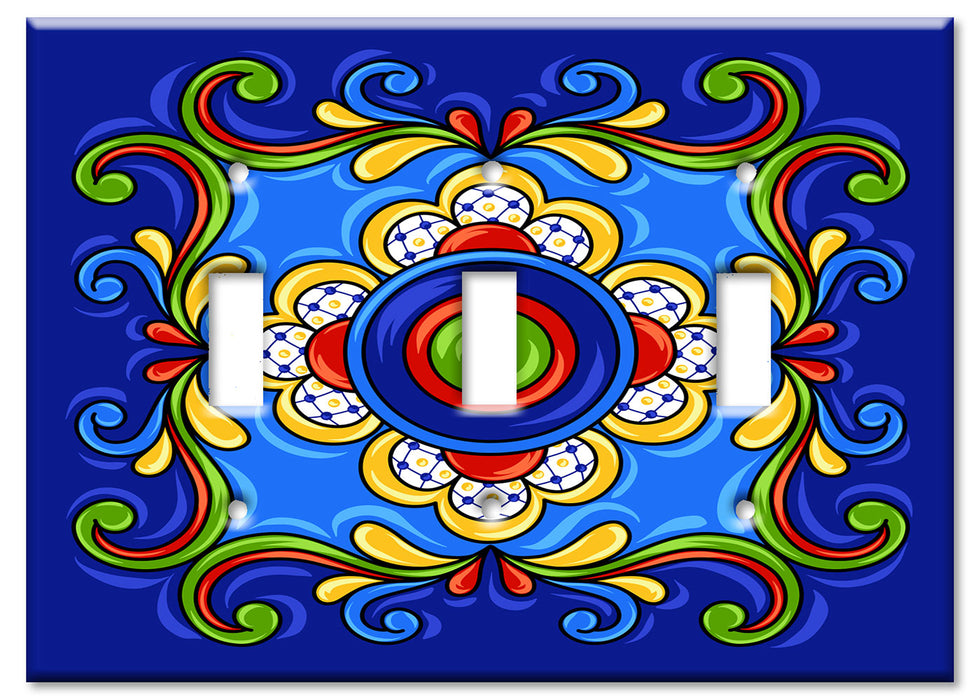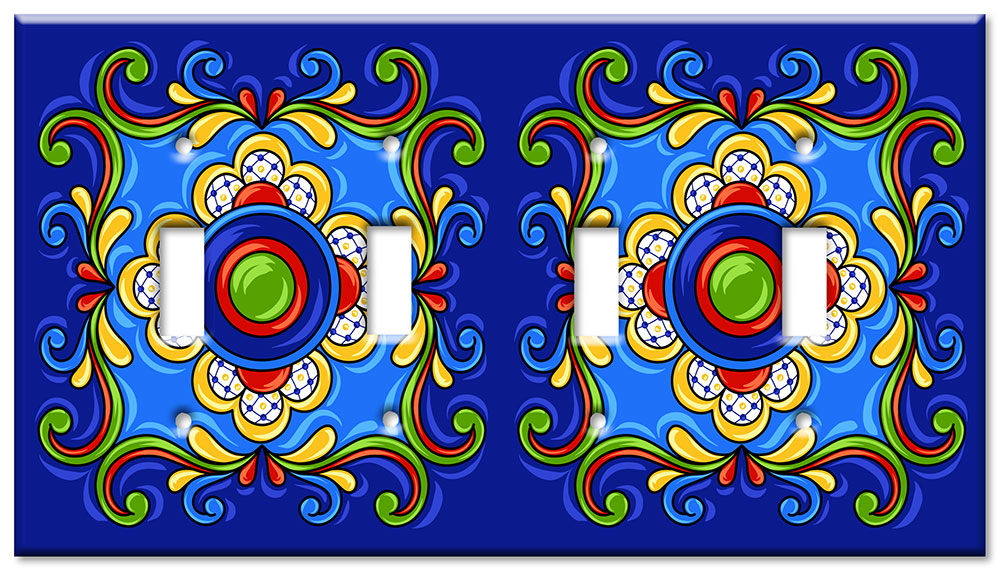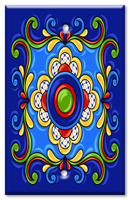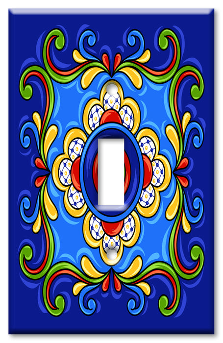 Decorative Printed Switch Plate - Electrical Switch Cover Wall Plate by Art Plates - Dark Blue Mexican Talavera Tile Print - 1 Gang Toggle