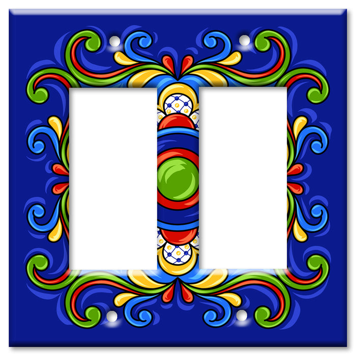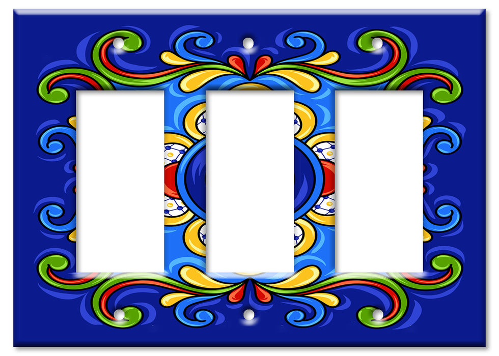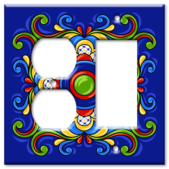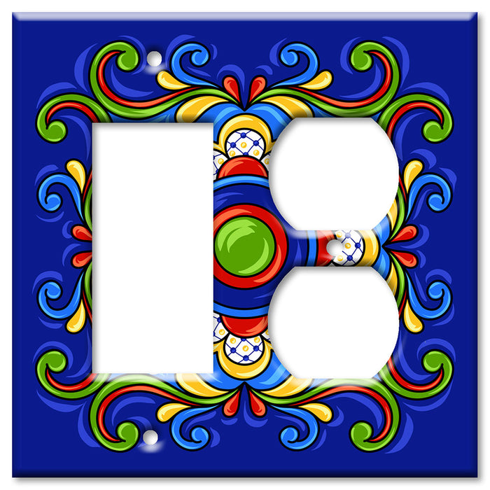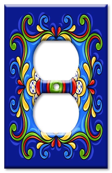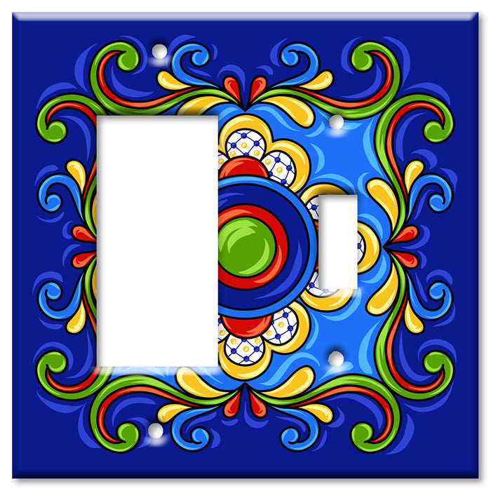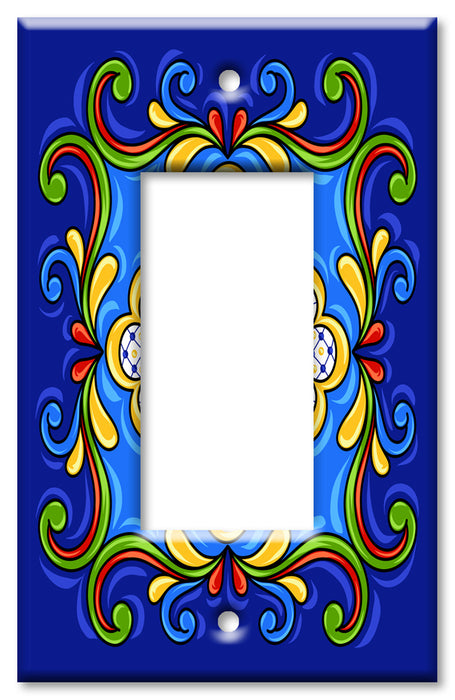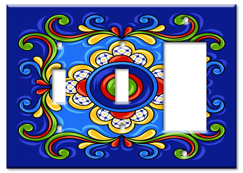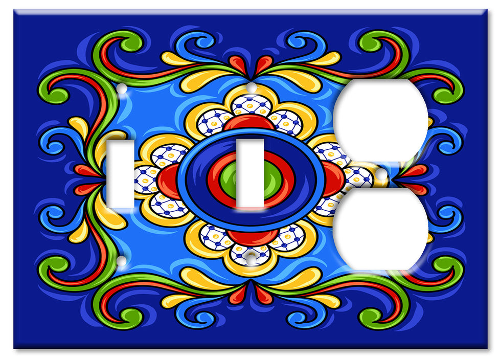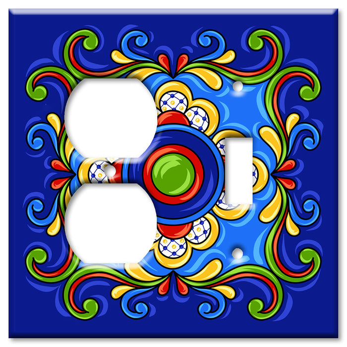 Decorative Printed Switch Plate - Electrical Switch Cover Wall Plate by Art Plates - Dark Blue Mexican Talavera Tile Print - 1 Gang Toggle