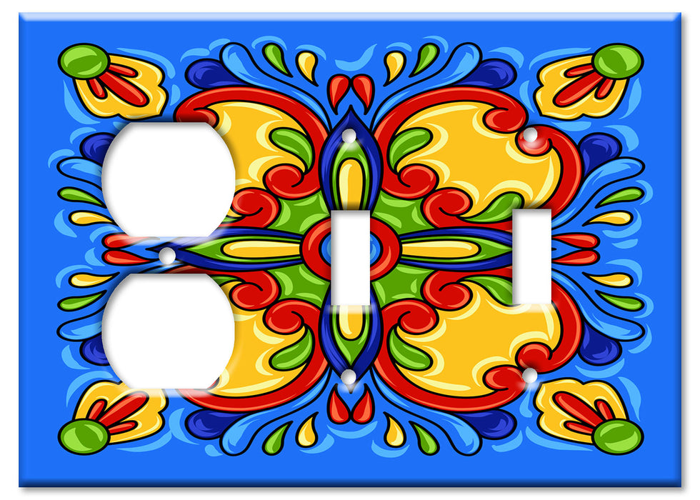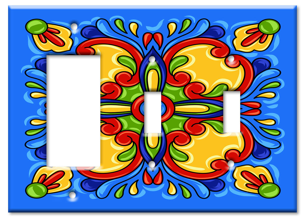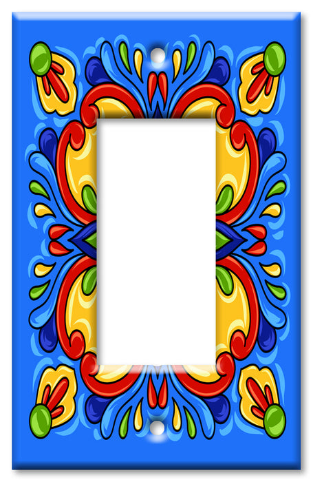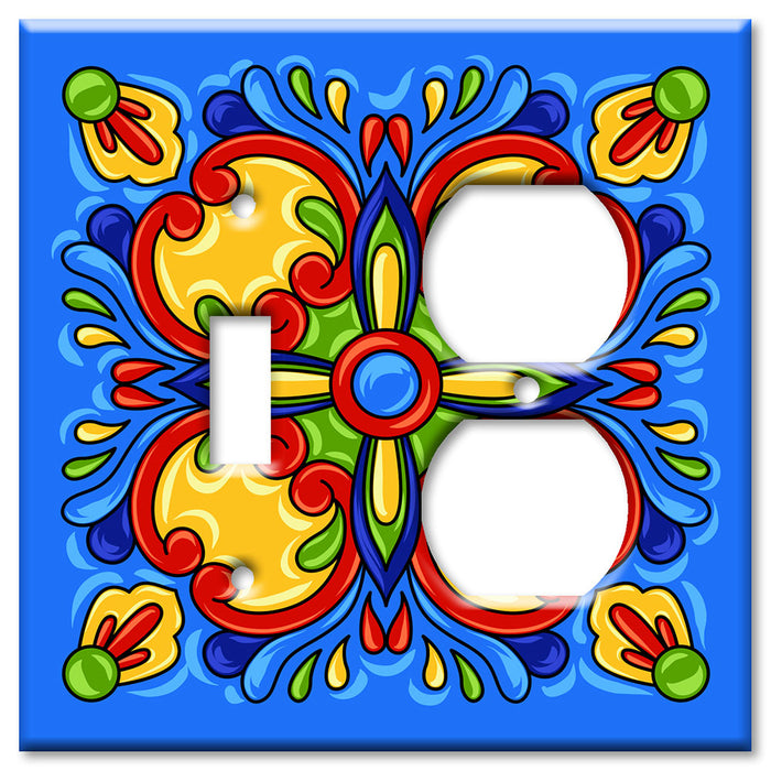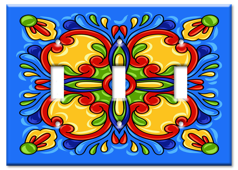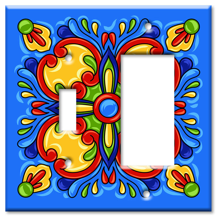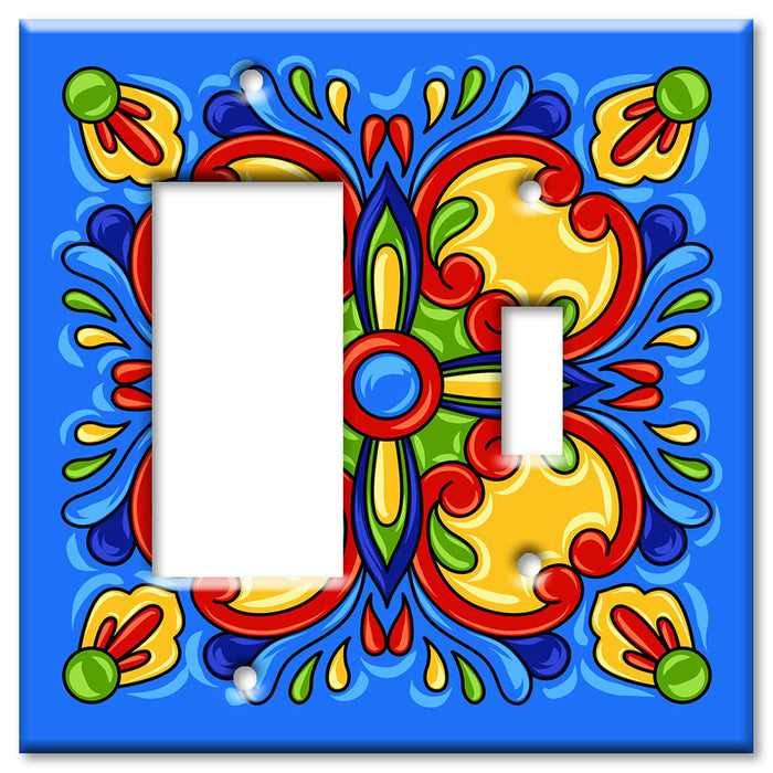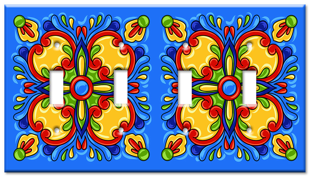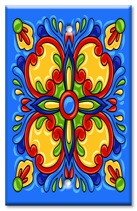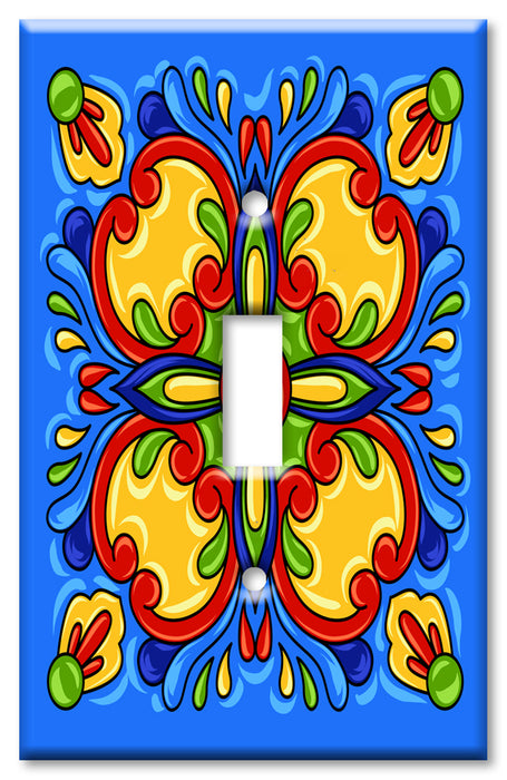 Decorative Printed Switch Plate - Electrical Switch Cover Wall Plate by Art Plates - Blue Mexican Talavera Tile Print - 1 Gang Toggle