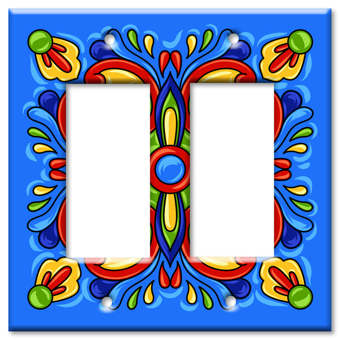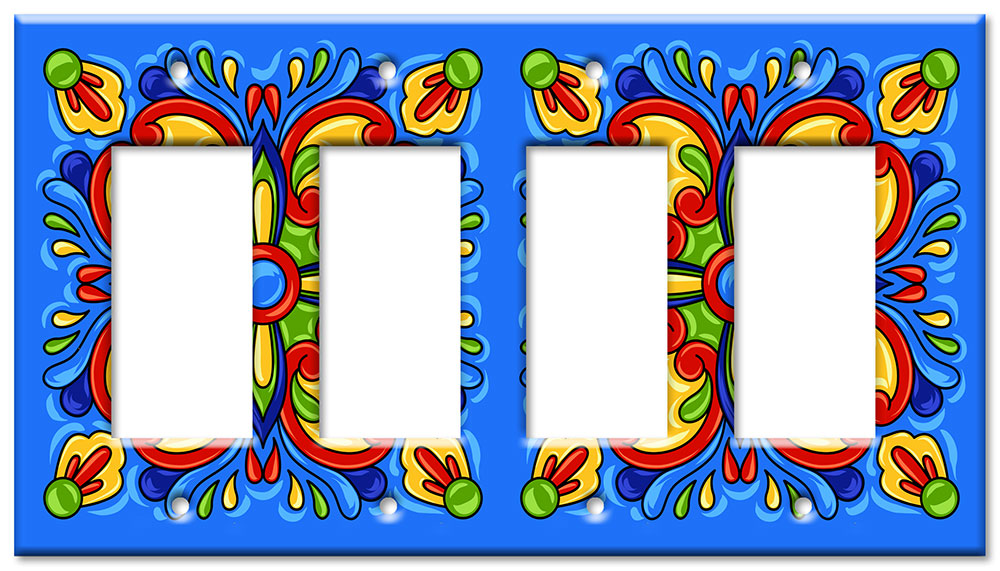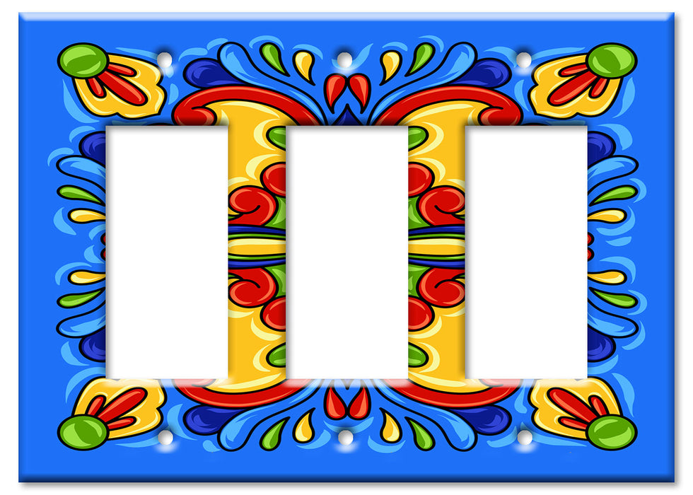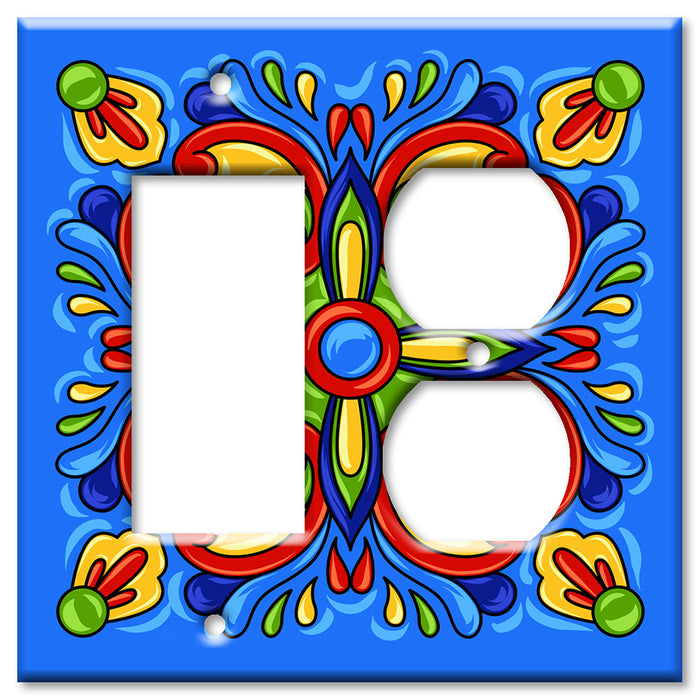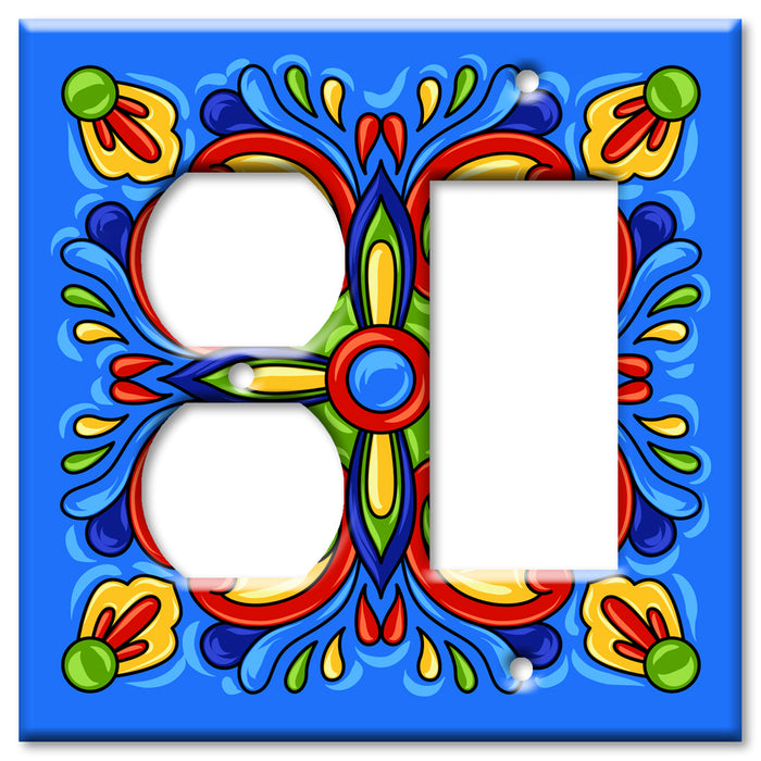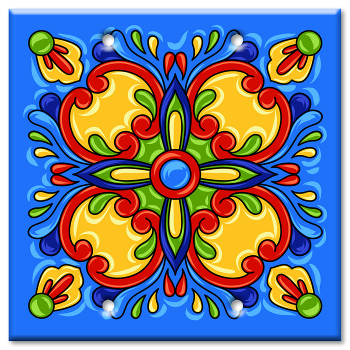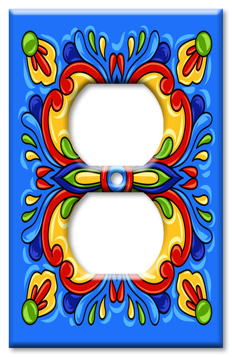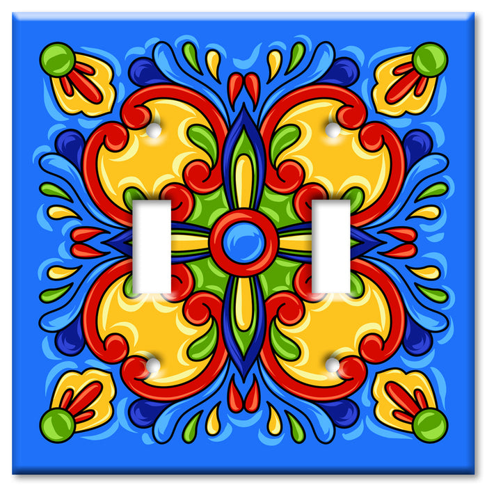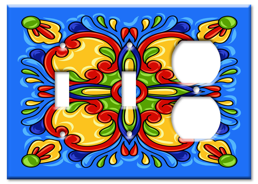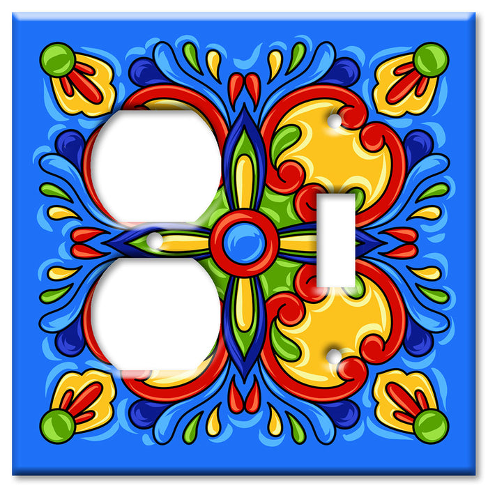 Decorative Printed Switch Plate - Electrical Switch Cover Wall Plate by Art Plates - Blue Mexican Talavera Tile Print - 1 Gang Toggle