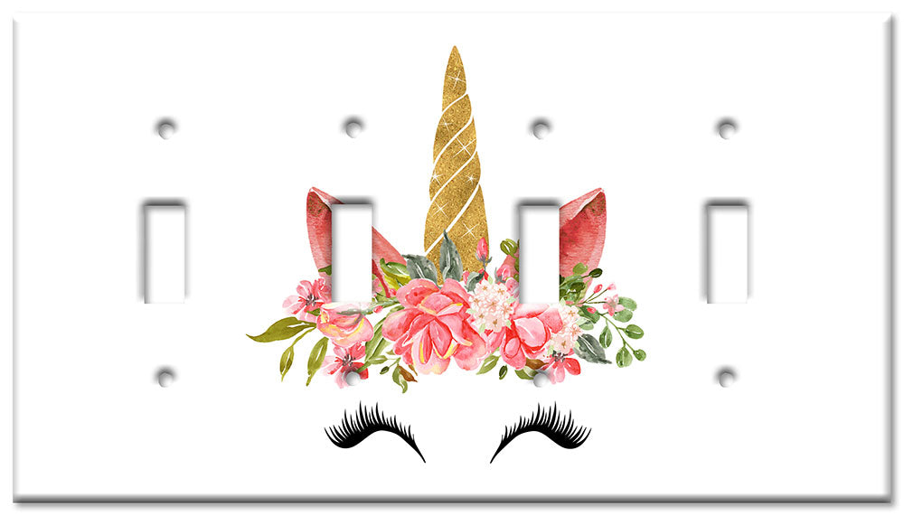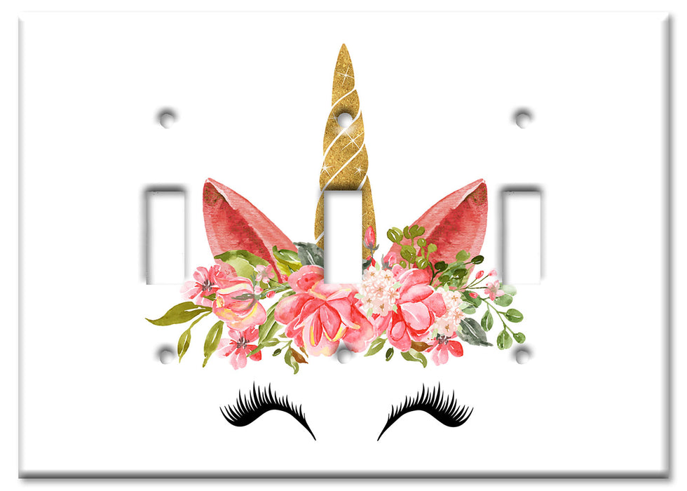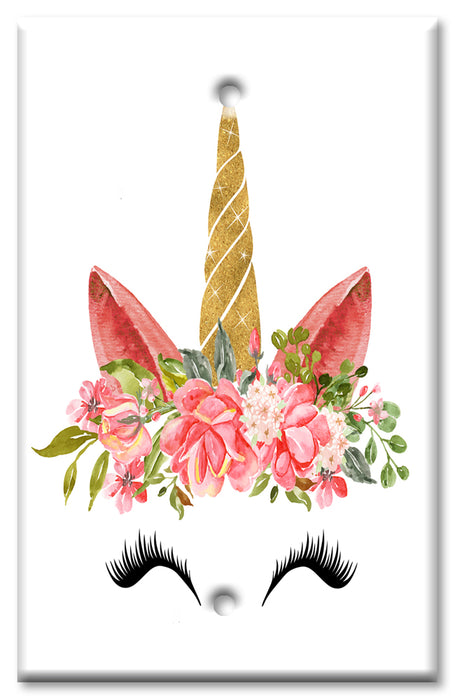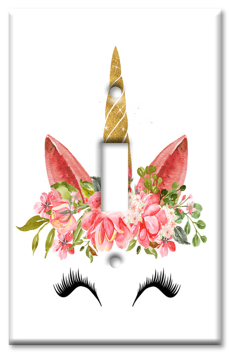 Decorative Printed Switch Plate - Electrical Switch Cover Wall Plate by Art Plates - Unicorn Face with Eyelashes - 1 Gang Toggle