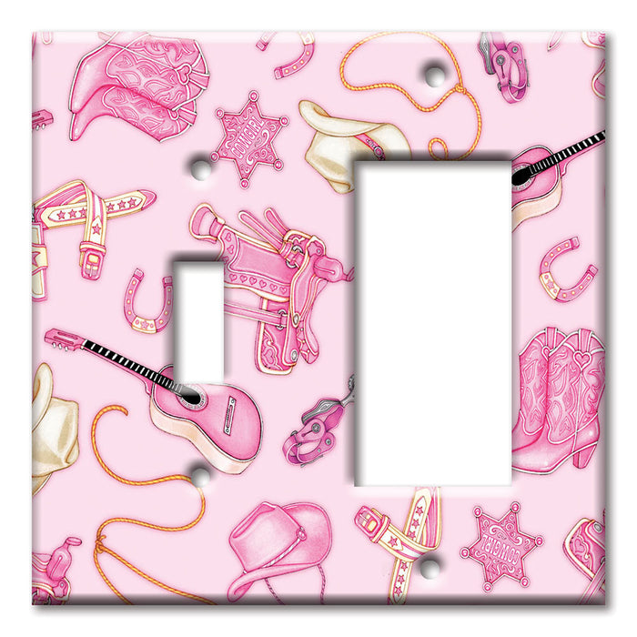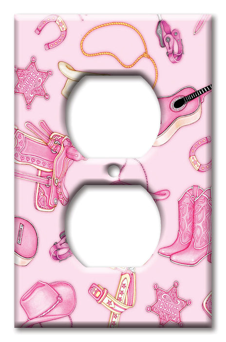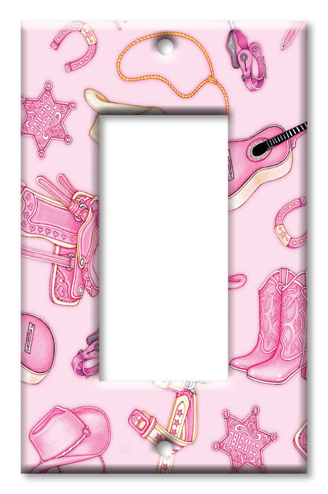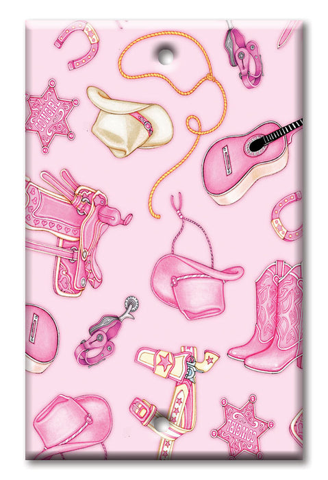 Decorative Printed Switch Plate - Electrical Switch Cover Wall Plate by Art Plates - Cow Girl (Pink) - Image by Dan Morris - 1 Gang Toggle