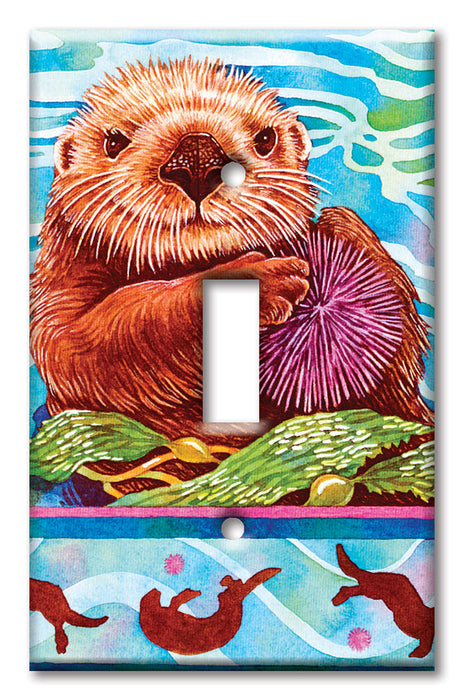 Decorative Printed OVERSIZED Switch Plate - Electrical Switch Cover JUMBO Wall Plate by Art Plates - Sea Otter - 1 Gang Toggle