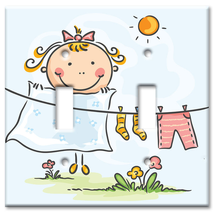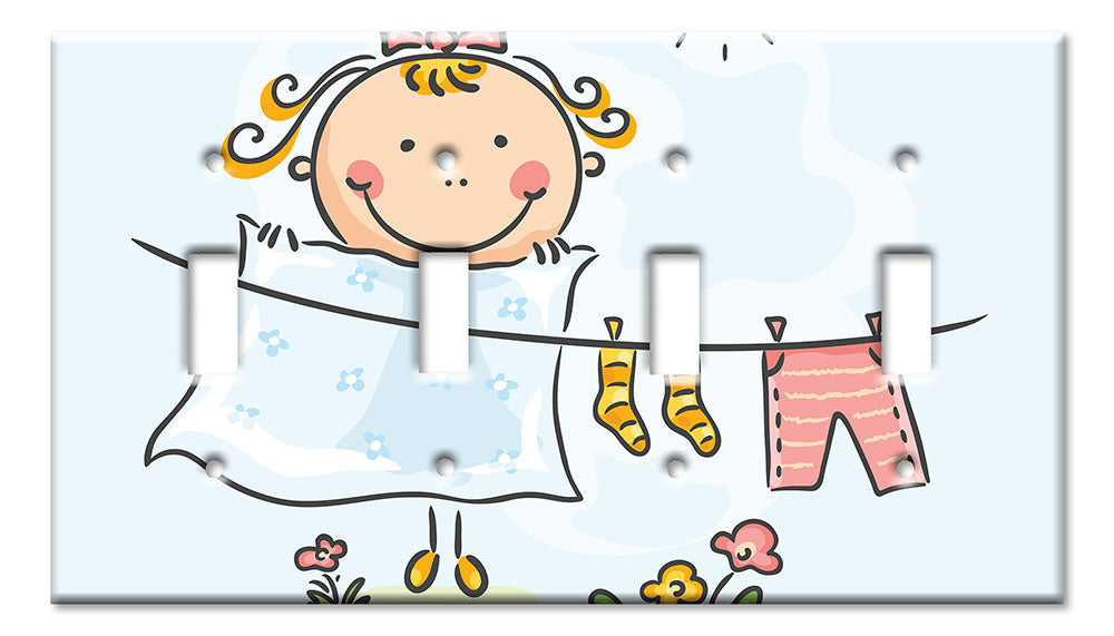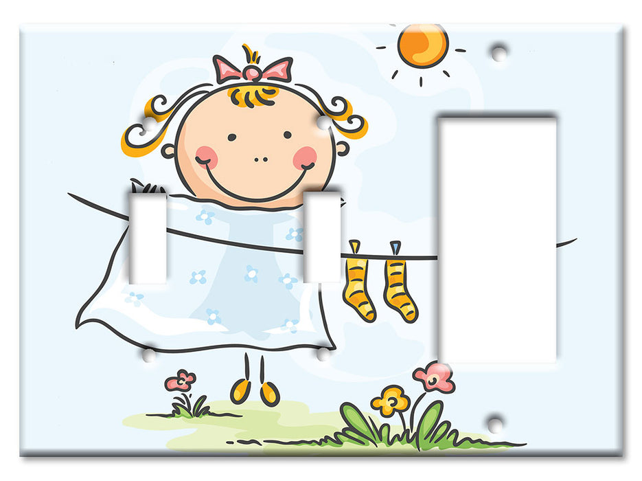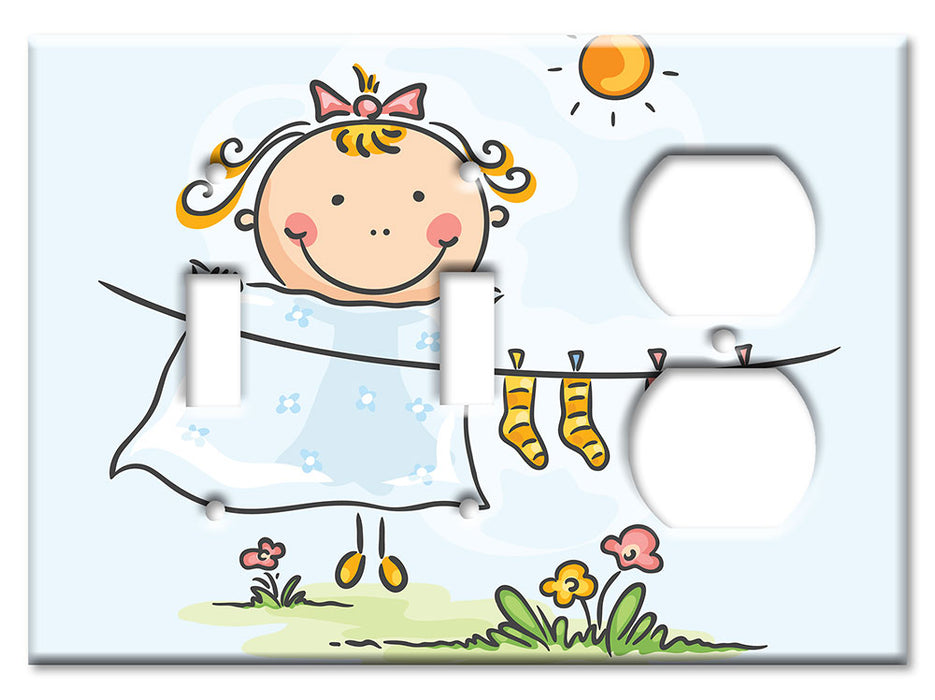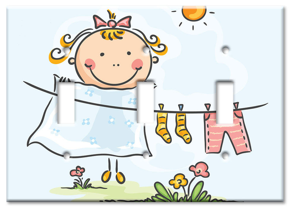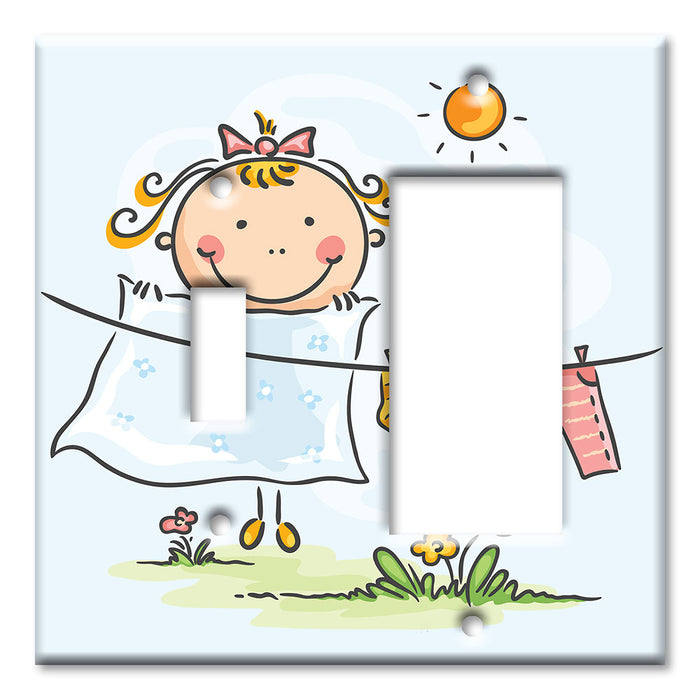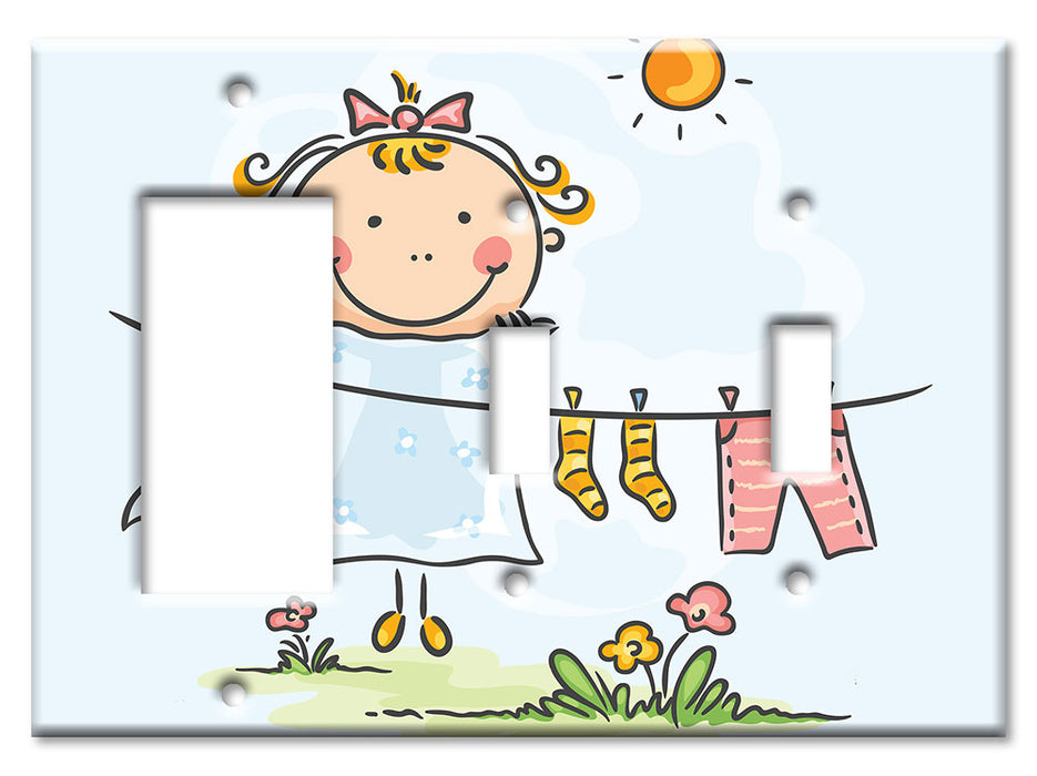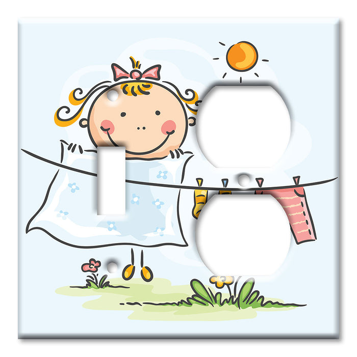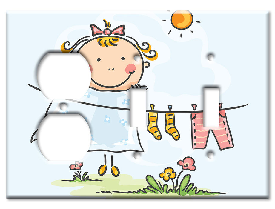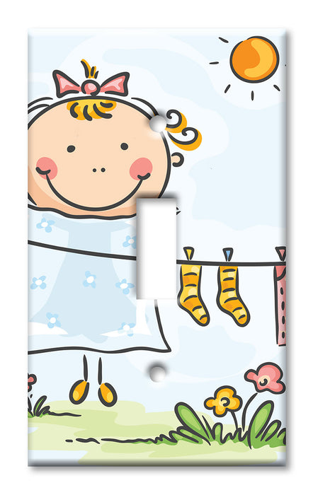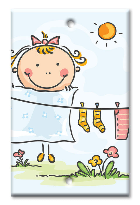 Decorative Printed OVERSIZED Switch Plate - Electrical Switch Cover JUMBO Wall Plate by Art Plates - Kid doing Laundry - 1 Gang Toggle