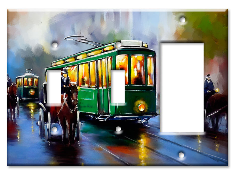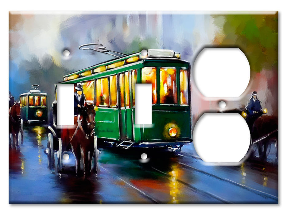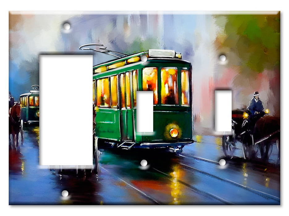 Decorative Printed OVERSIZED Switch Plate - Electrical Switch Cover JUMBO Wall Plate by Art Plates - Cable Car Painting - 1 Gang Toggle