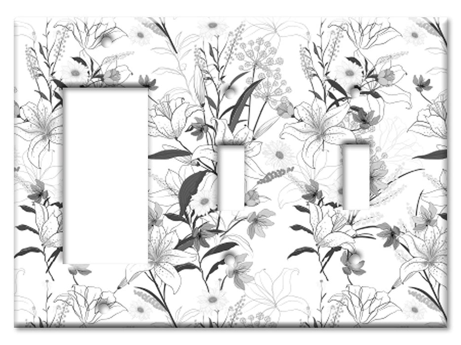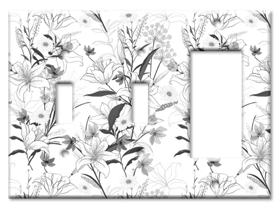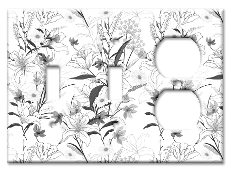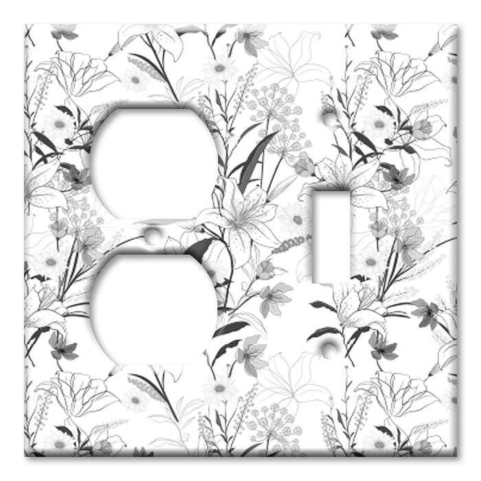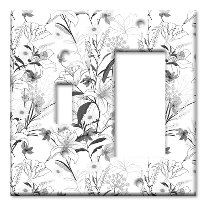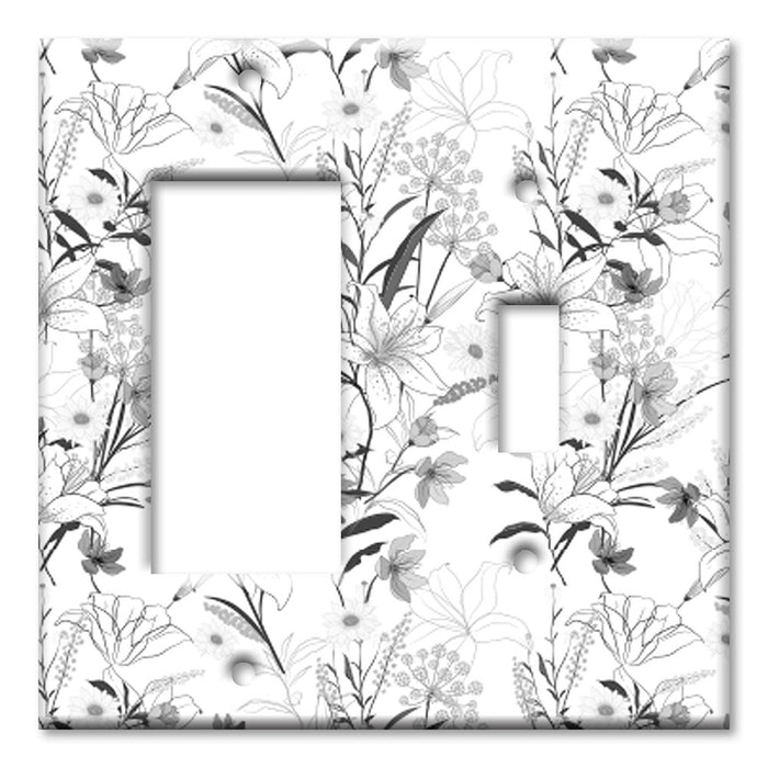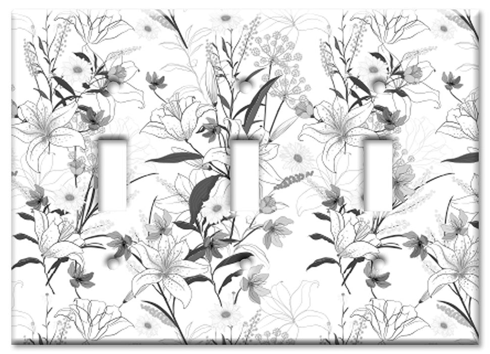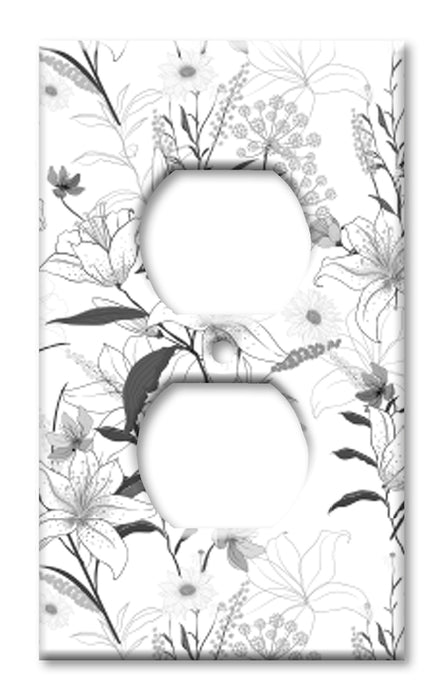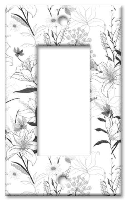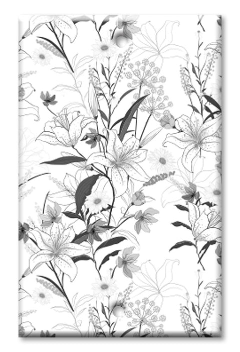 Decorative Printed Switch Plate - Electrical Switch Cover Wall Plate by Art Plates - Grayscale Floral Line Art - 1 Gang Toggle