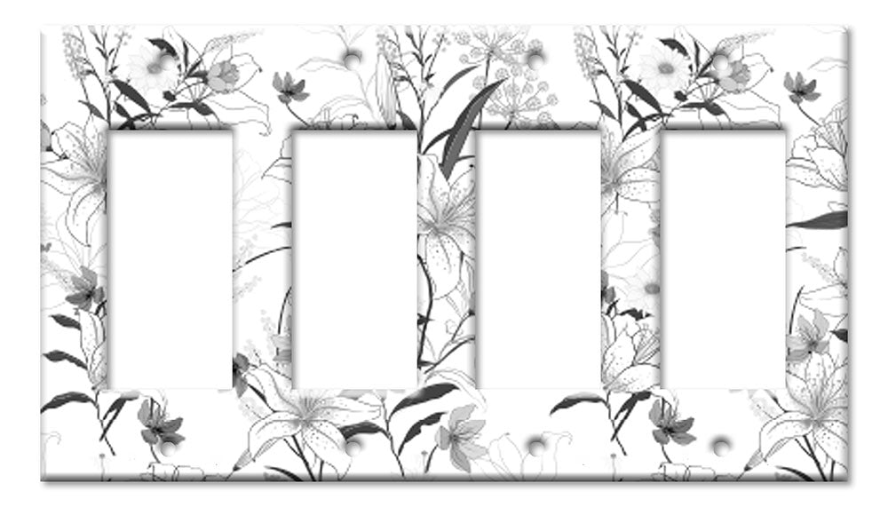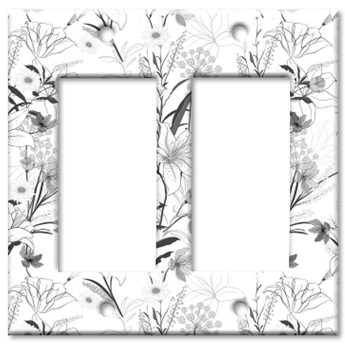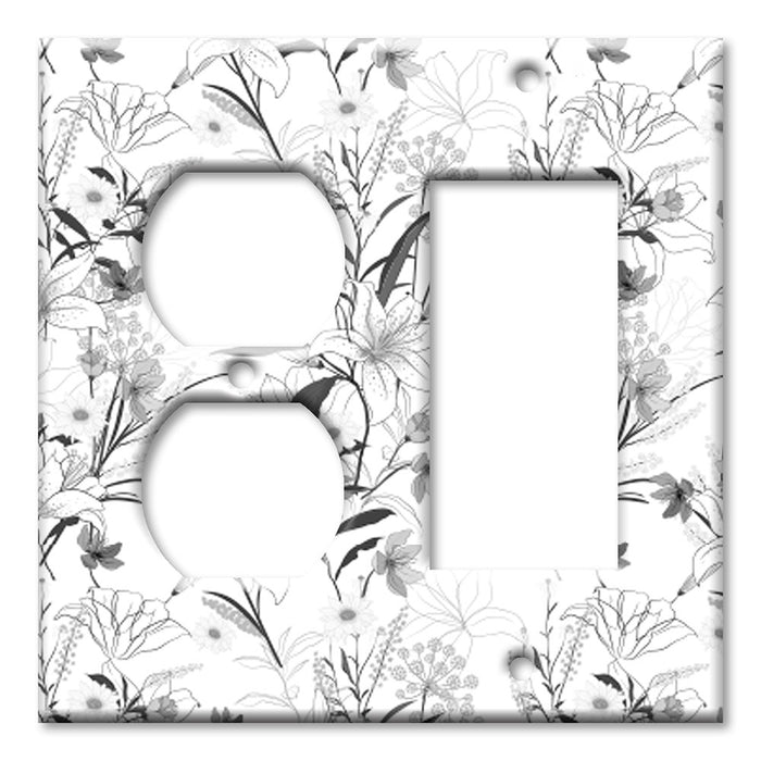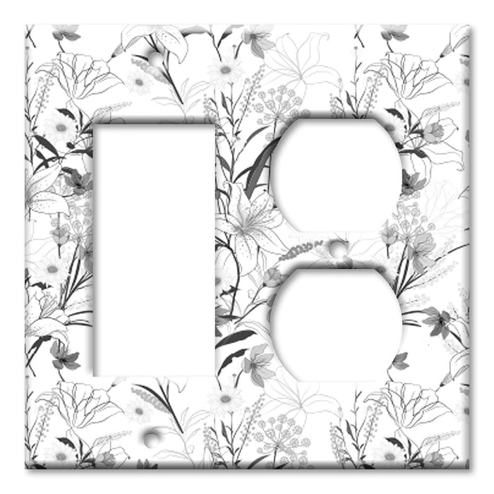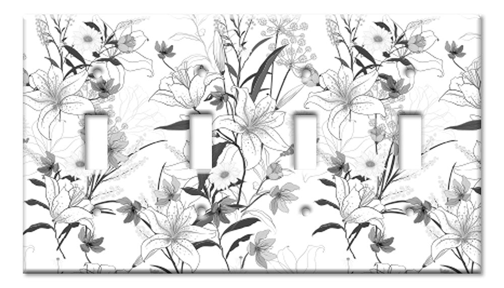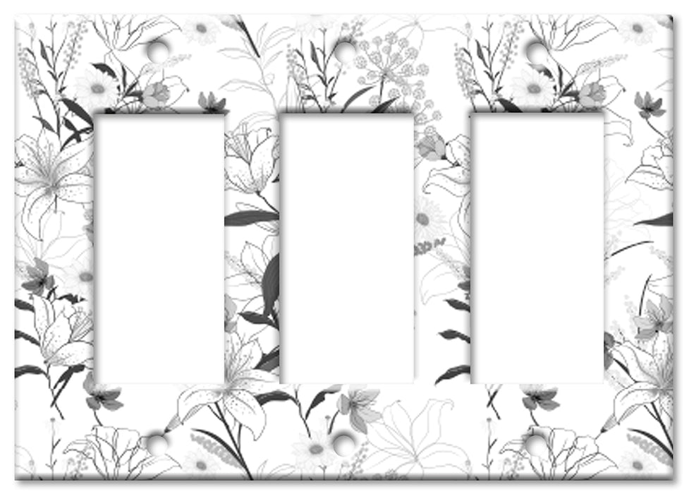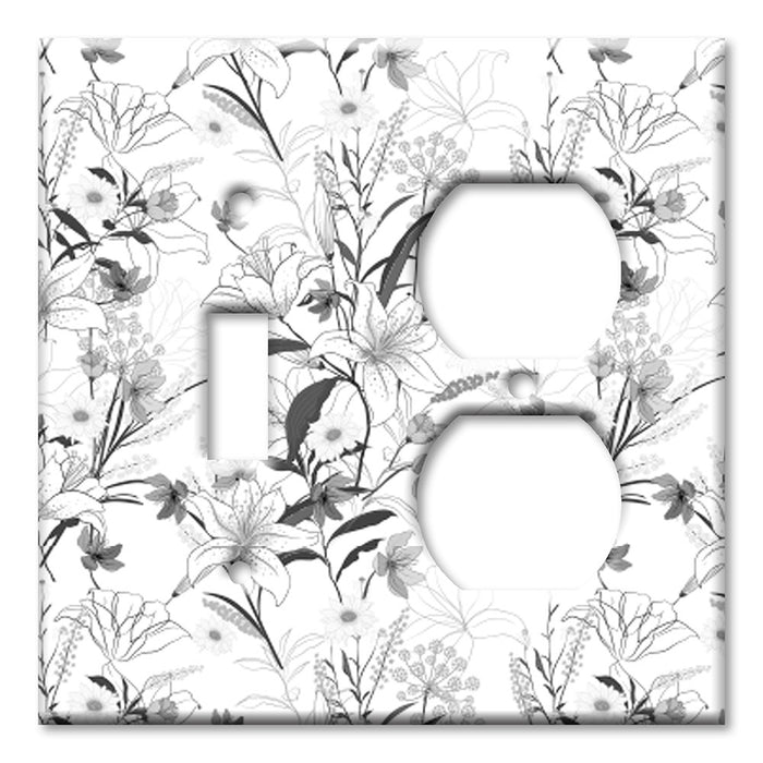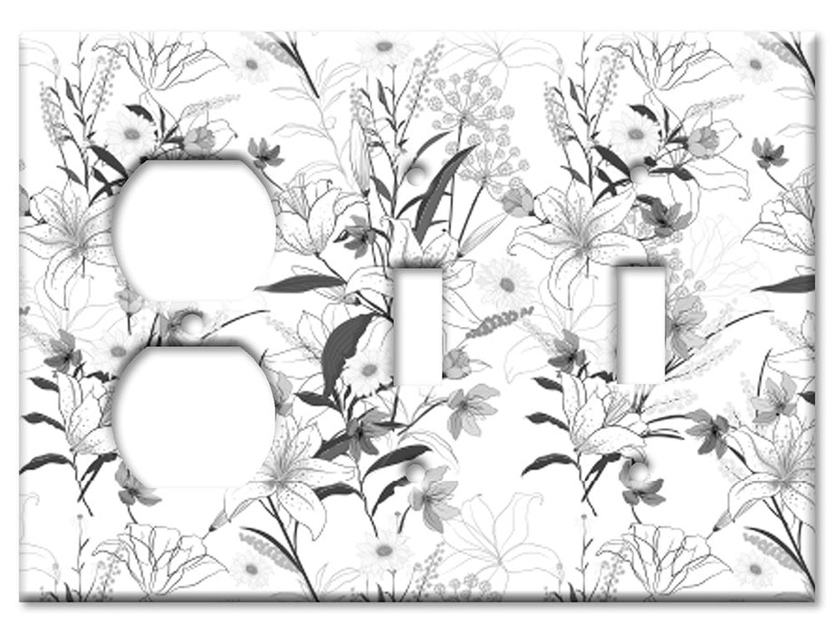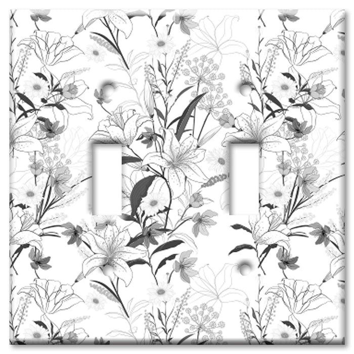 Decorative Printed Switch Plate - Electrical Switch Cover Wall Plate by Art Plates - Grayscale Floral Line Art - 1 Gang Toggle