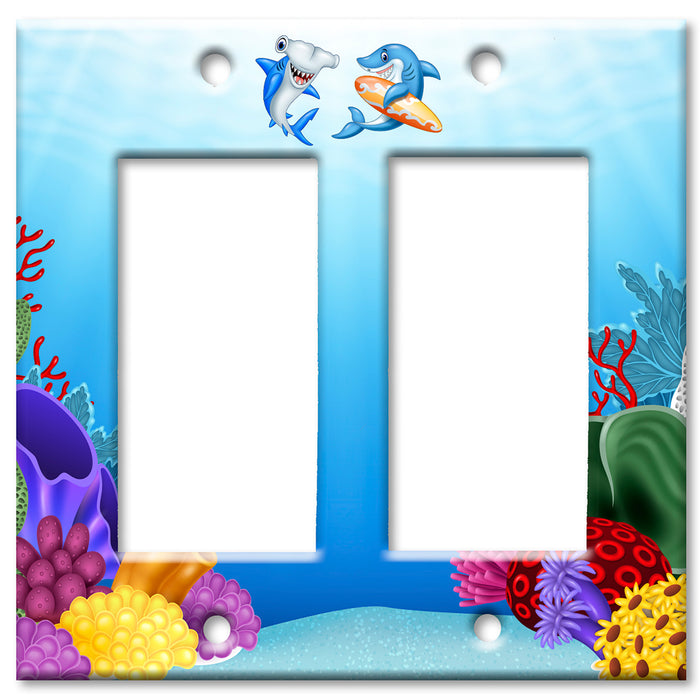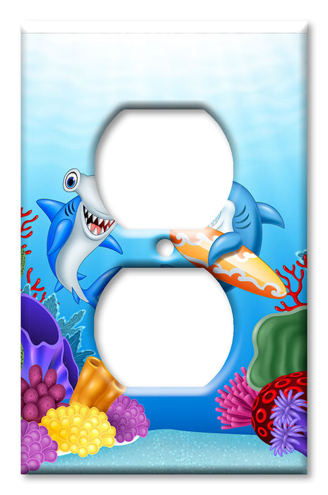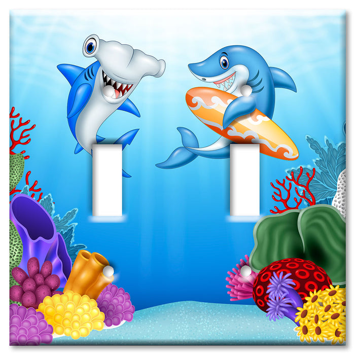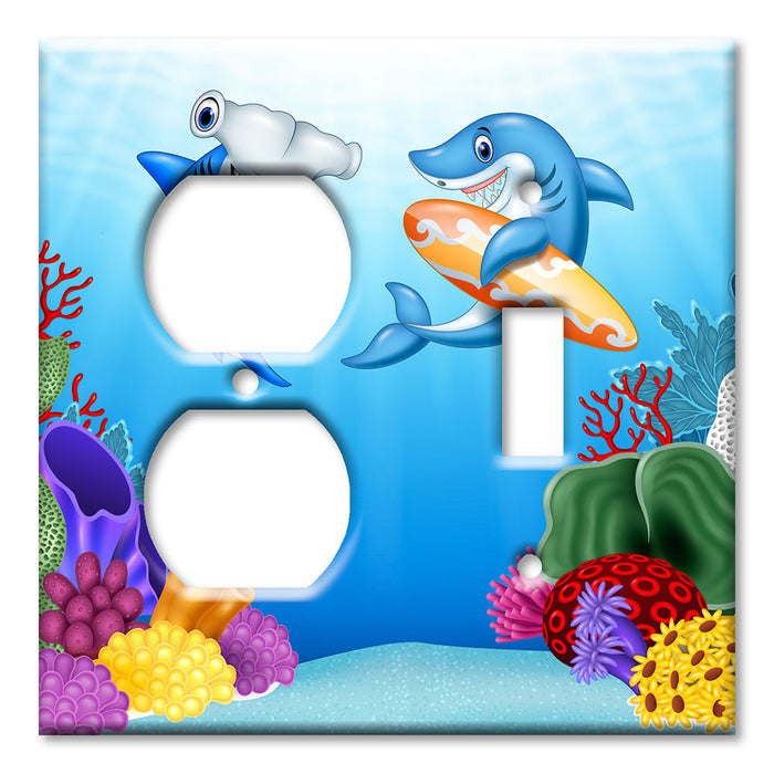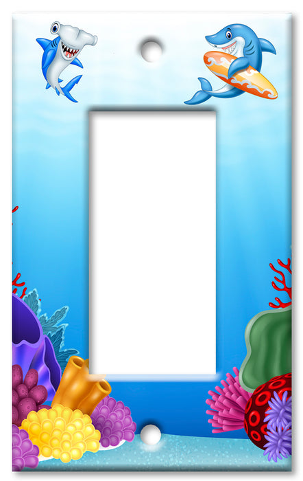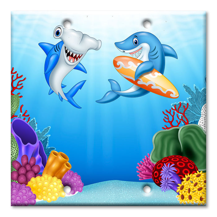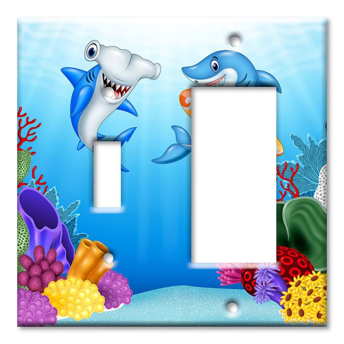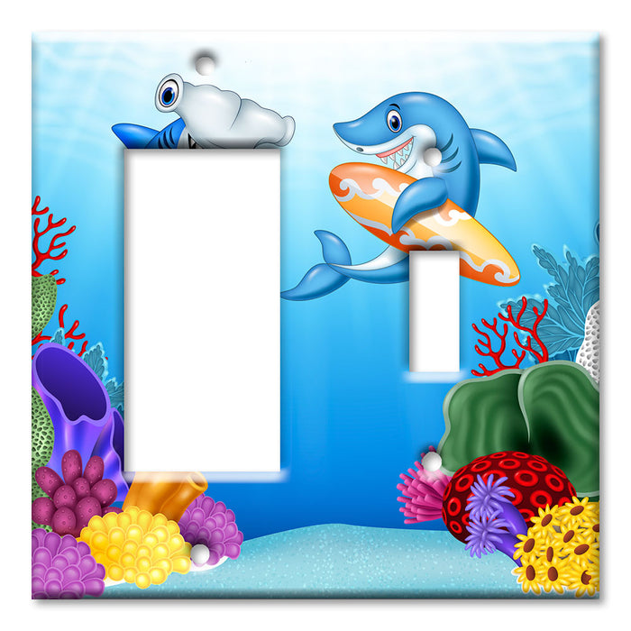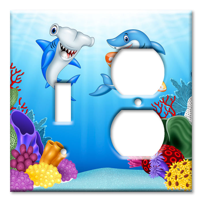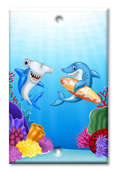 Decorative Printed OVERSIZED Switch Plate - Electrical Switch Cover JUMBO Wall Plate by Art Plates - Friendly Sharks - 1 Gang Toggle