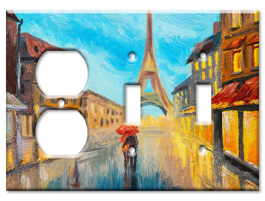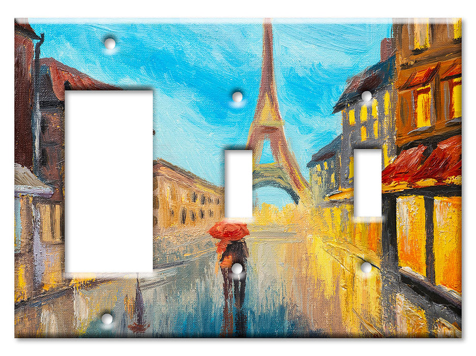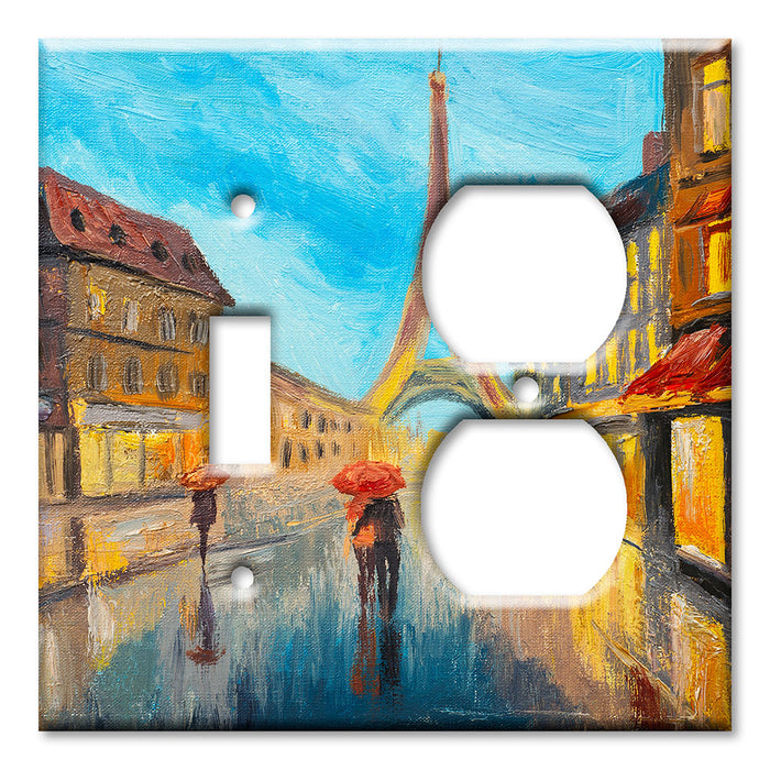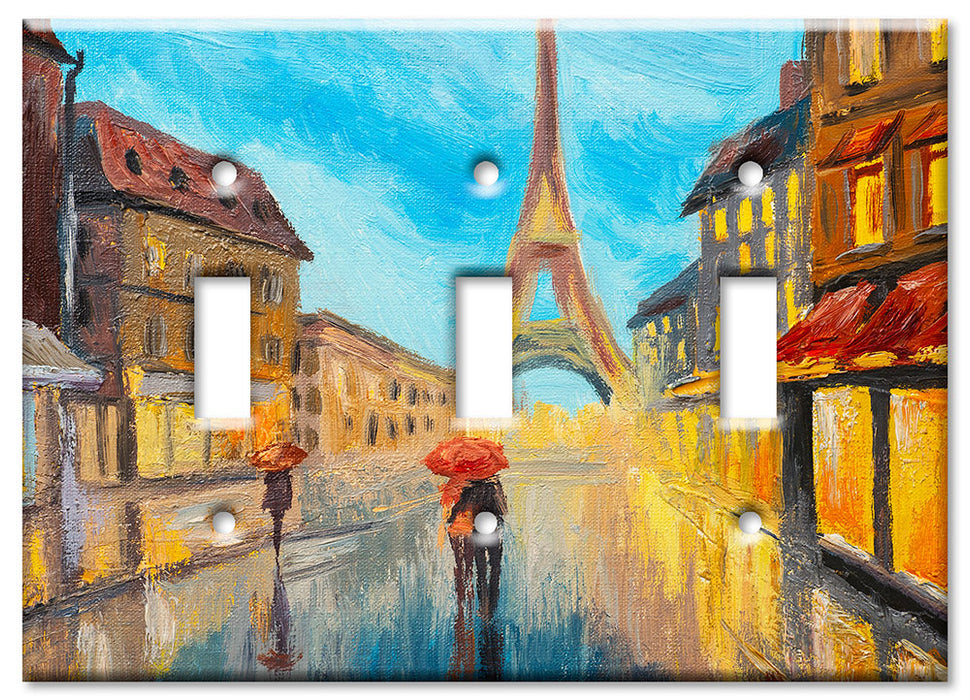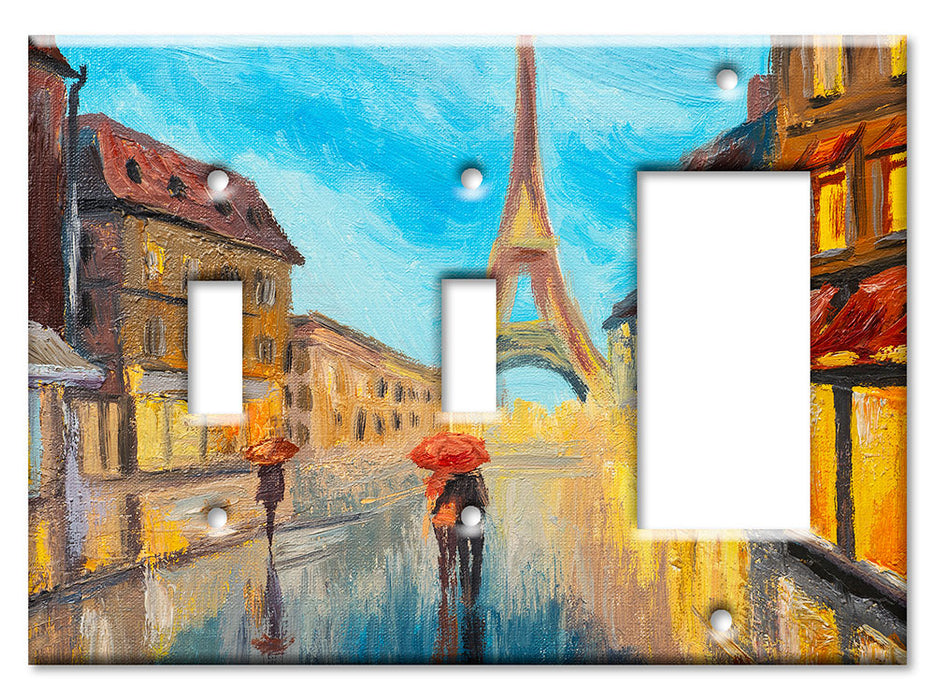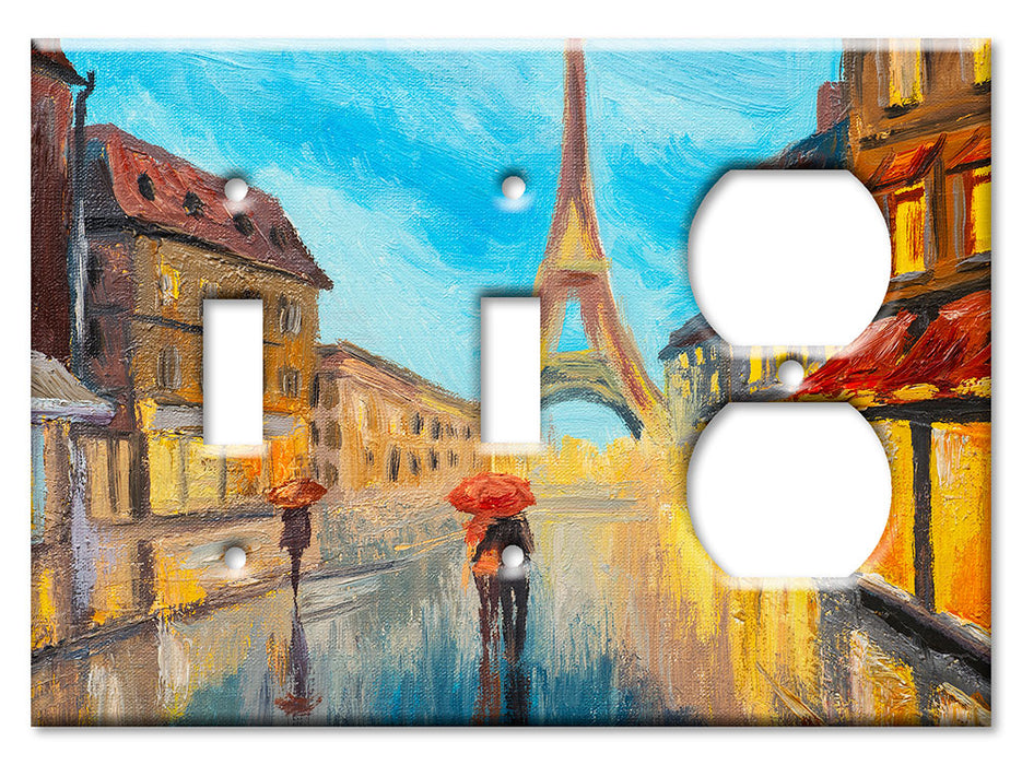 Decorative Printed OVERSIZED Switch Plate - Electrical Switch Cover JUMBO Wall Plate by Art Plates - Pairs in the Rain - 1 Gang Toggle