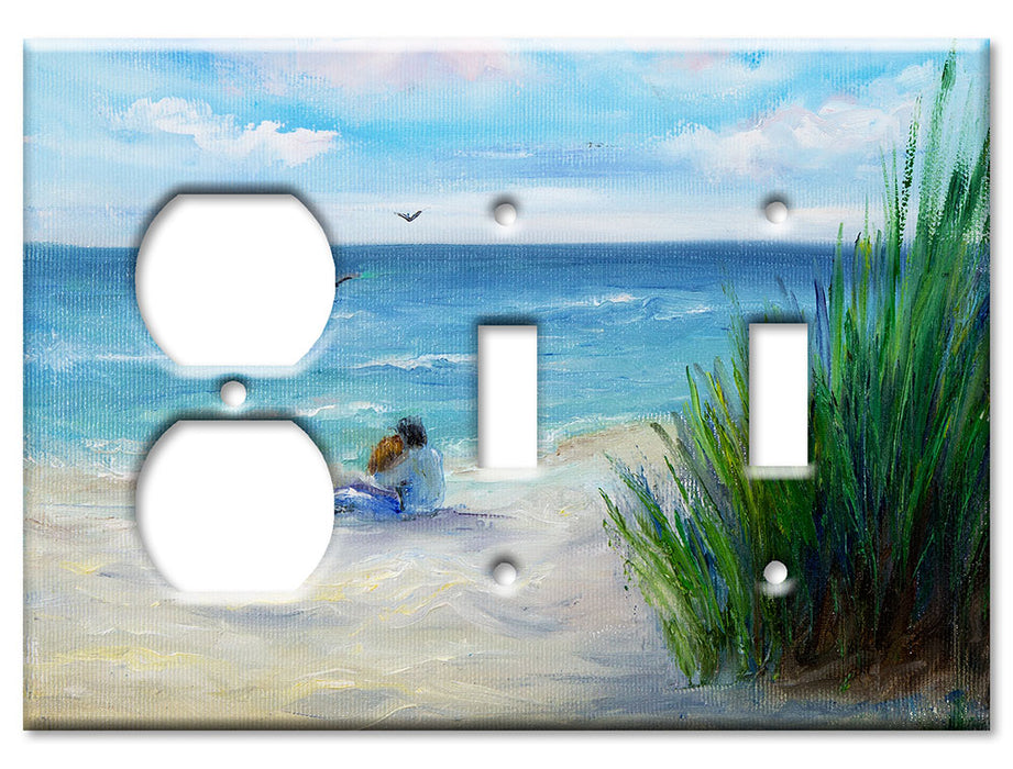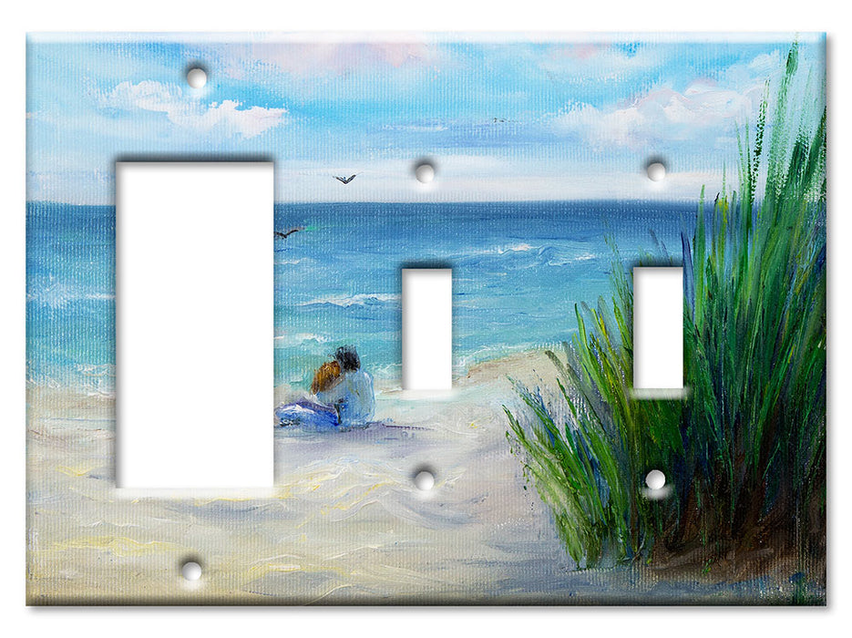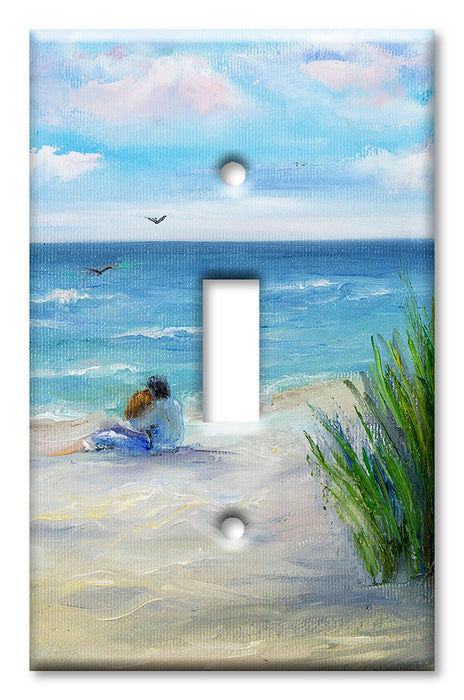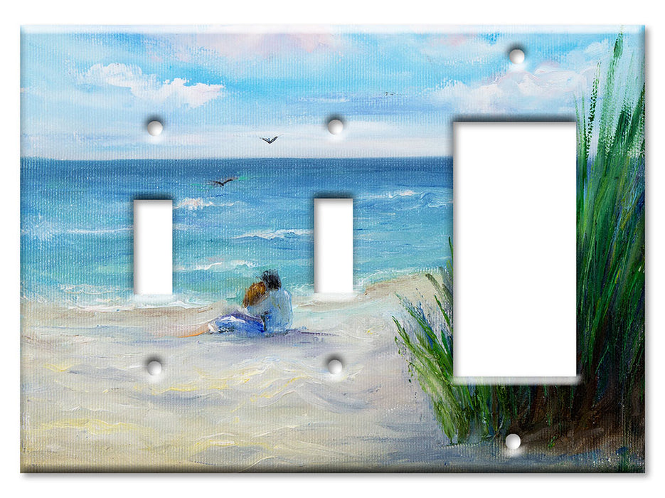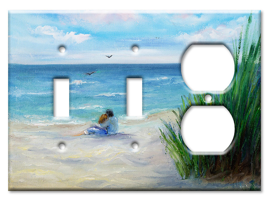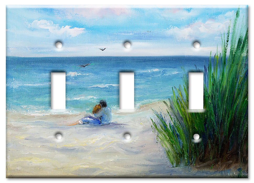 Decorative Printed OVERSIZED Switch Plate - Electrical Switch Cover JUMBO Wall Plate by Art Plates - Lovers on the Beach - 1 Gang Toggle