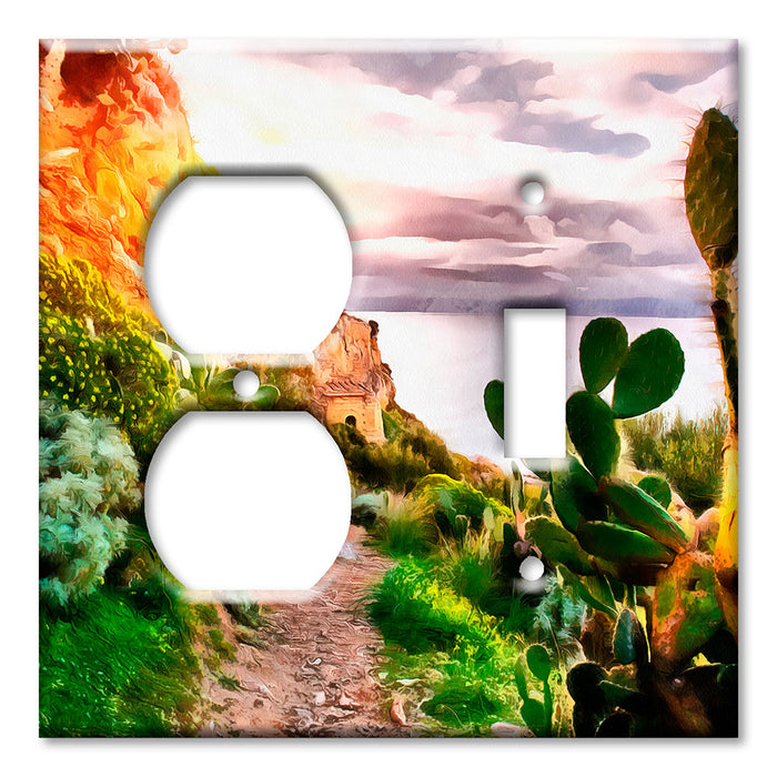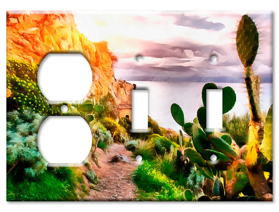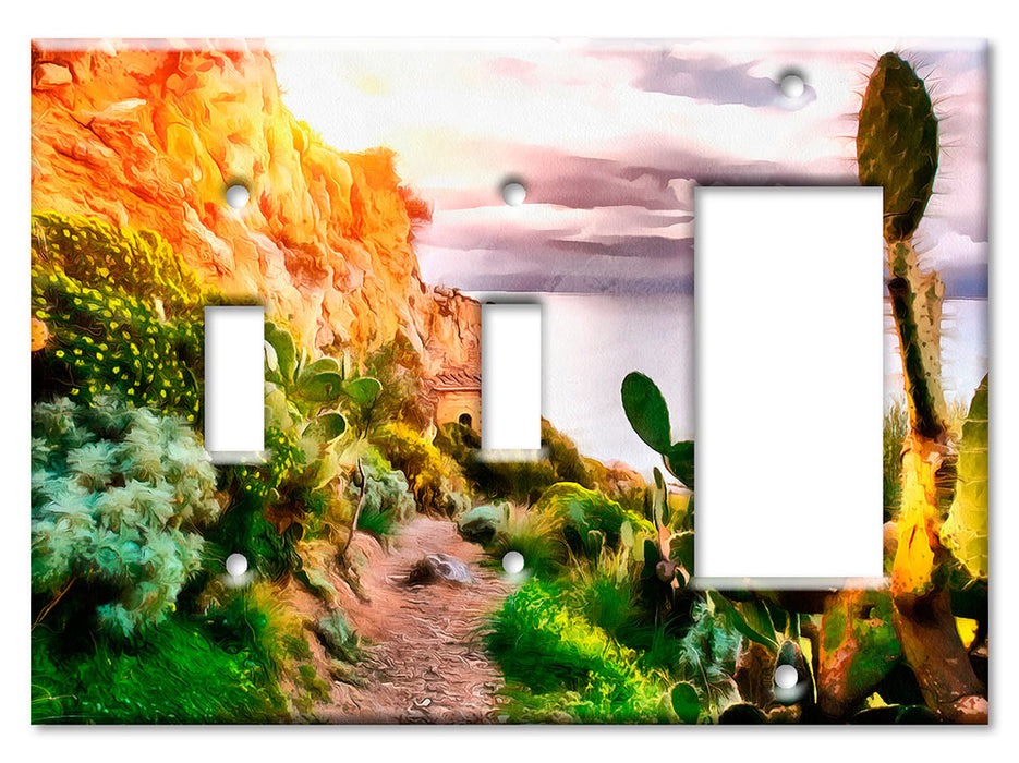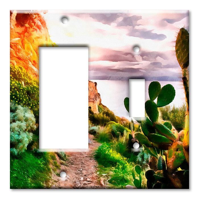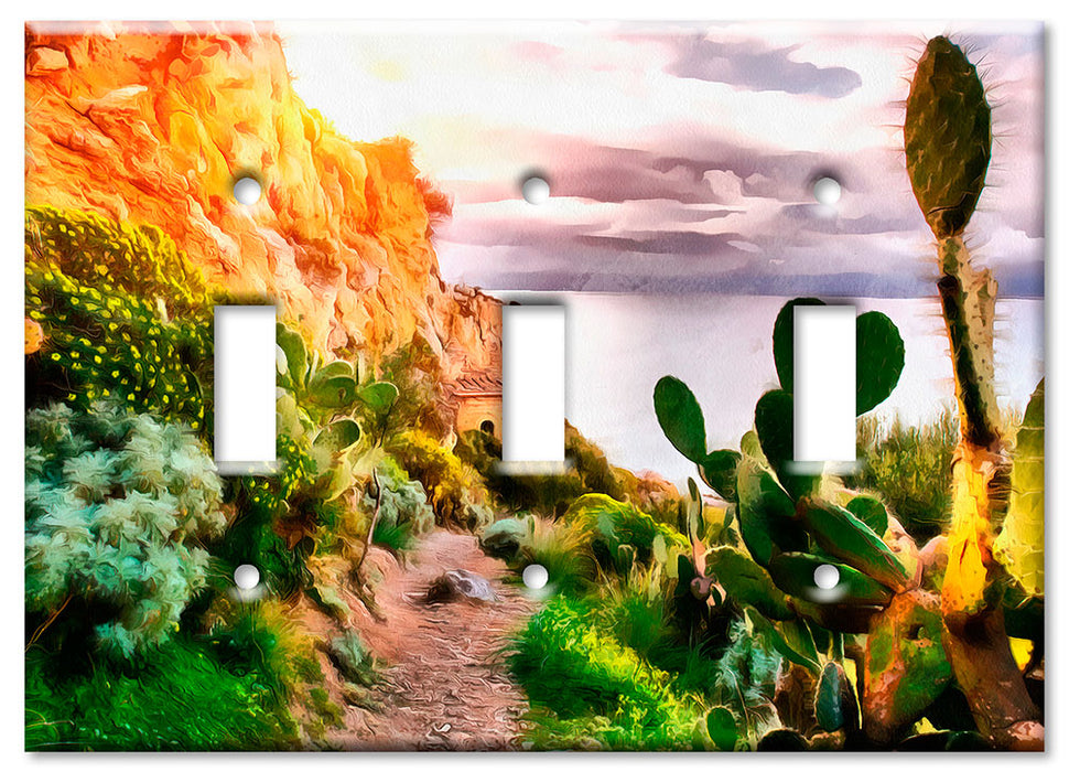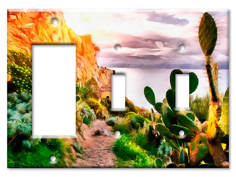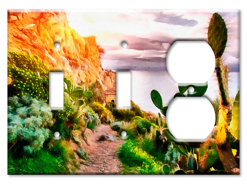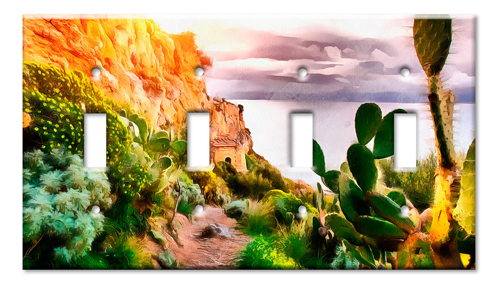Decorative Printed OVERSIZED Switch Plate - Electrical Switch Cover JUMBO Wall Plate by Art Plates - Cactus Painting - 1 Gang Toggle