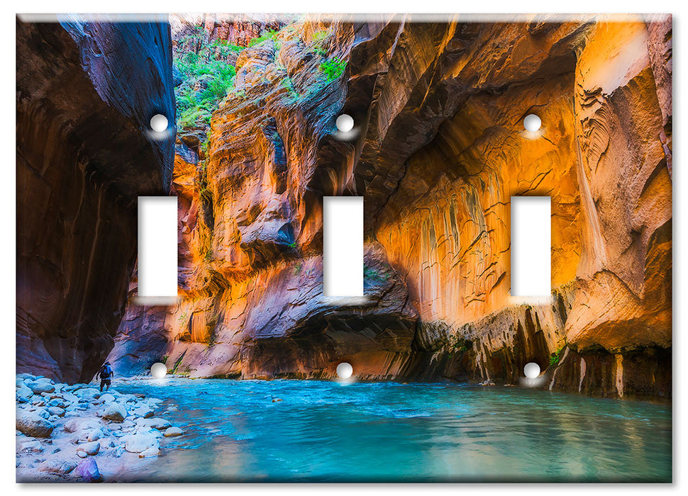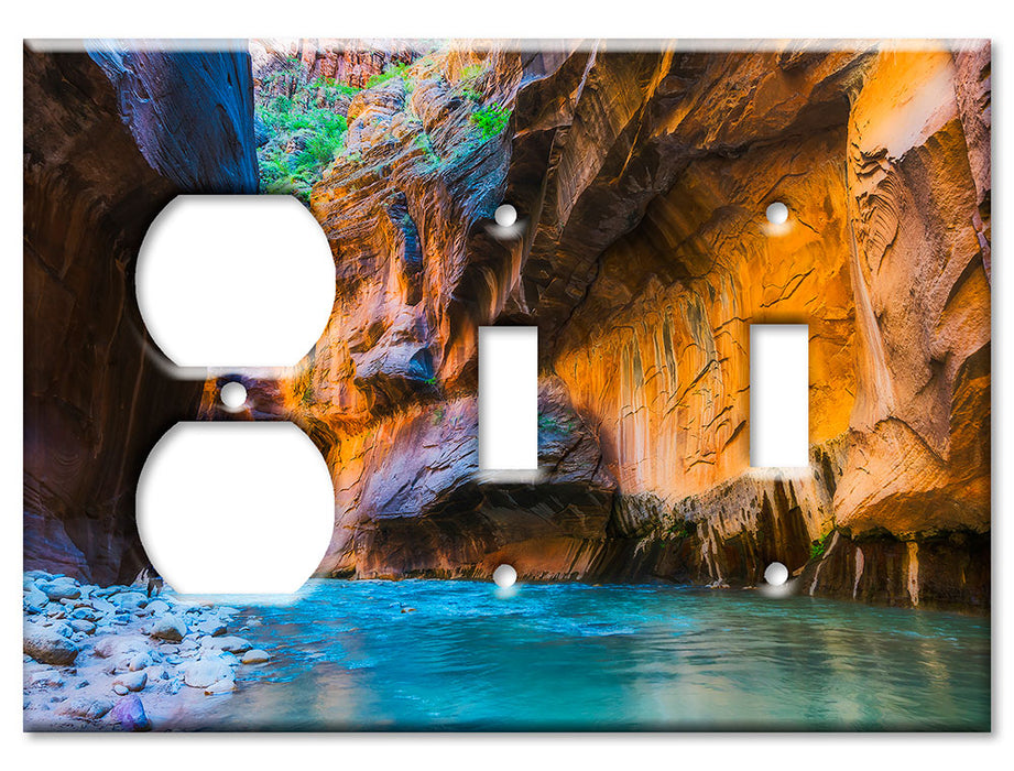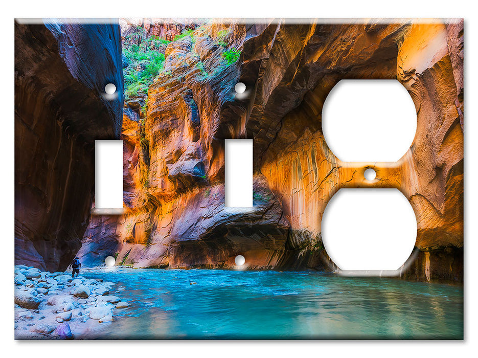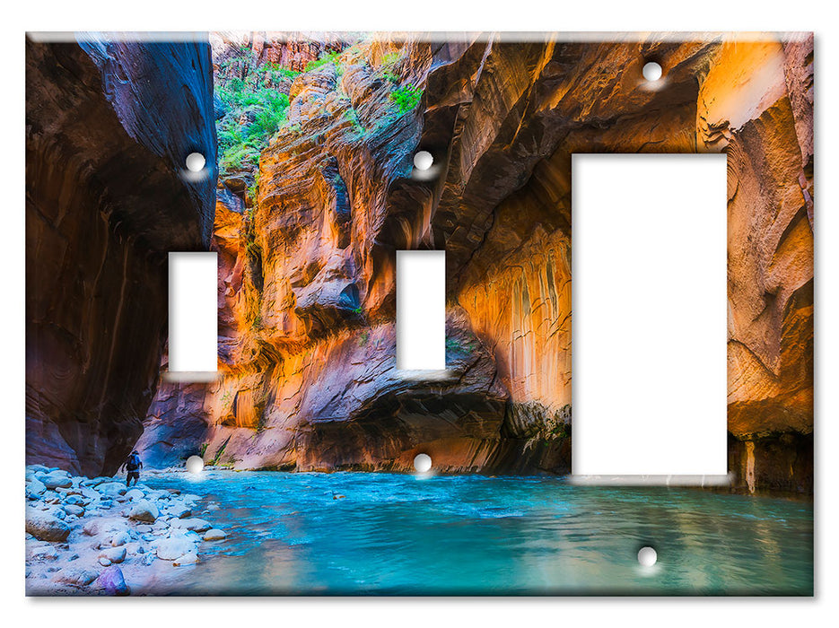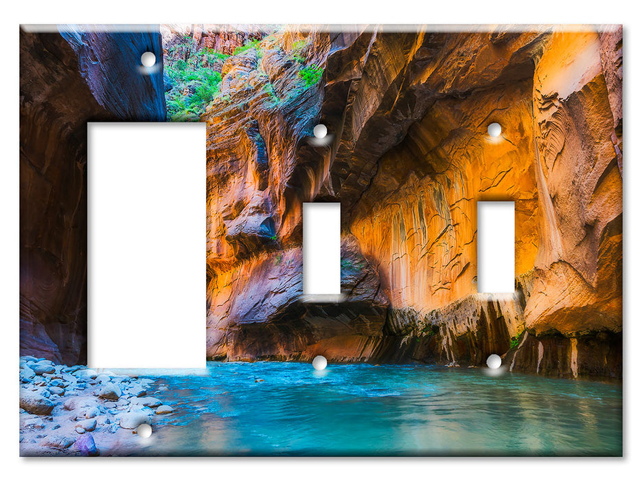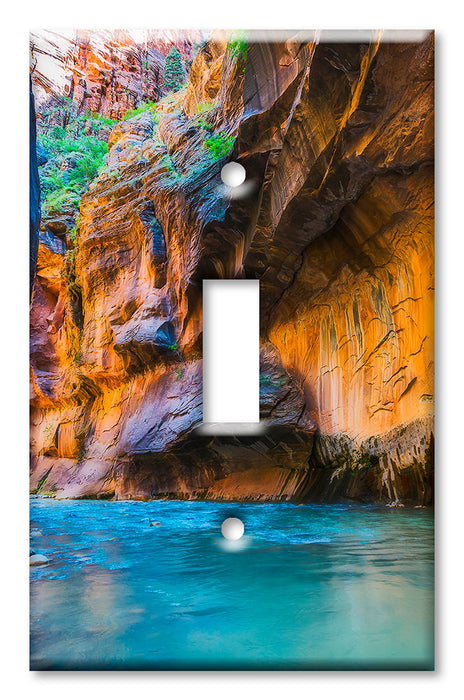 Decorative Printed OVERSIZED Switch Plate - Electrical Switch Cover JUMBO Wall Plate by Art Plates - River Running in-between Cliffs - 1 Gang Toggle