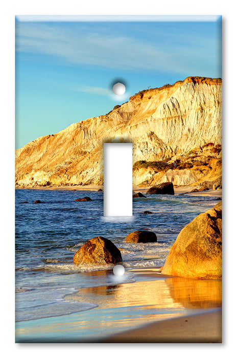 Decorative Printed OVERSIZED Switch Plate - Electrical Switch Cover JUMBO Wall Plate by Art Plates - White Rock Cliff Beachside - 1 Gang Toggle