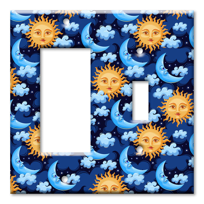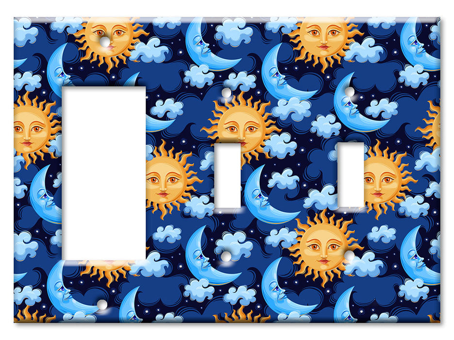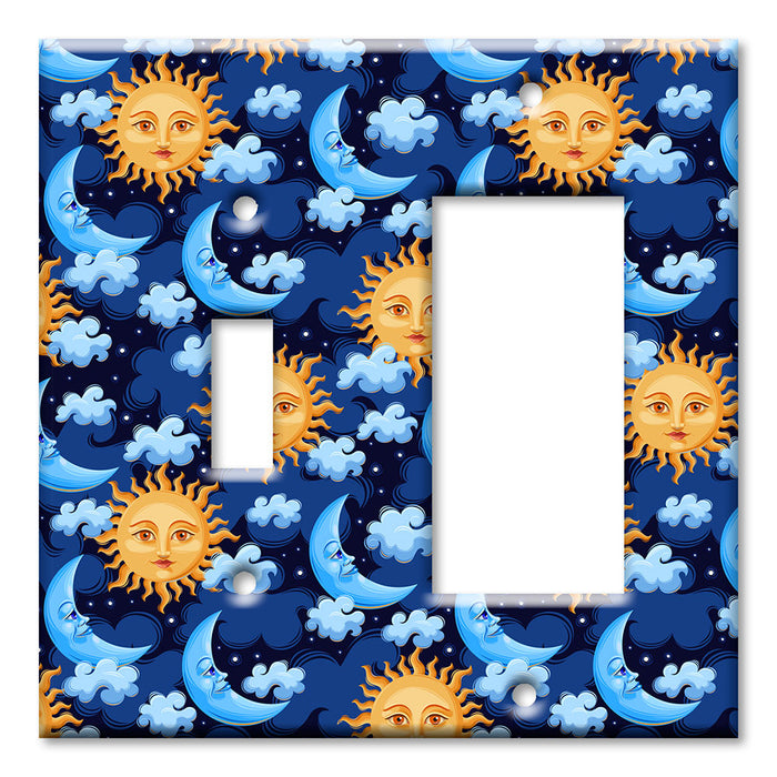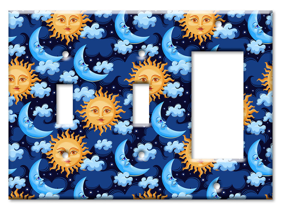 Decorative Printed Switch Plate - Electrical Switch Cover Wall Plate by Art Plates - Moon and Sun - 1 Gang Toggle