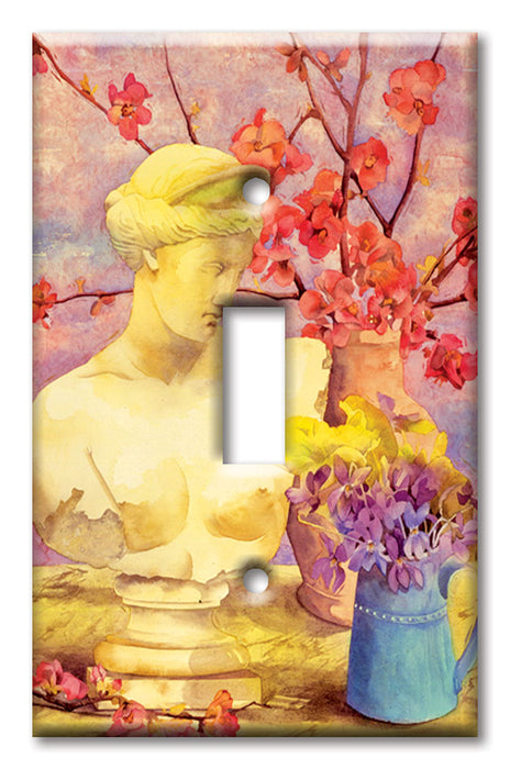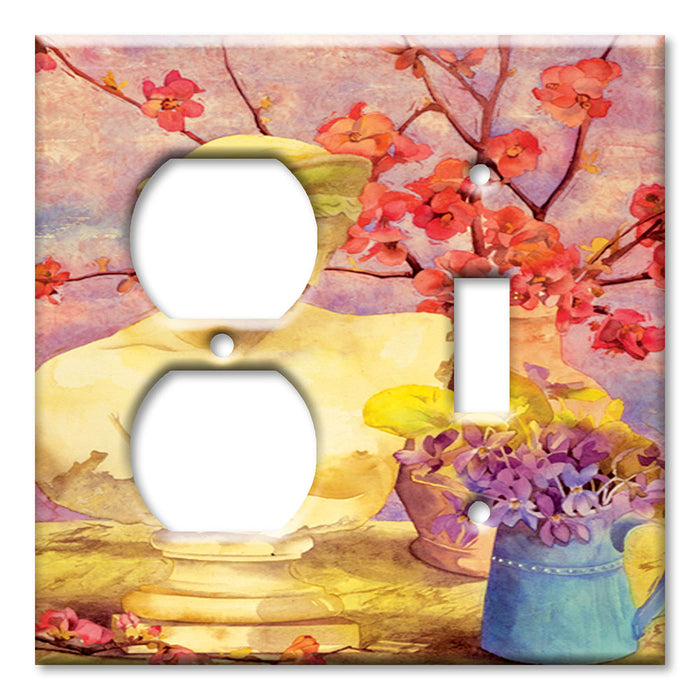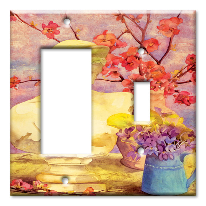 Decorative Printed OVERSIZED Switch Plate - Electrical Switch Cover JUMBO Wall Plate by Art Plates - Japonica and Violets - 1 Gang Toggle