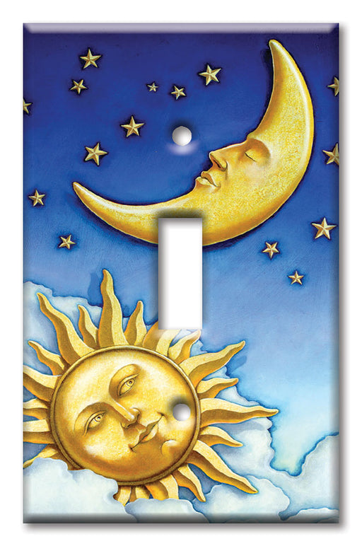 Decorative Printed Switch Plate - Electrical Switch Cover Wall Plate by Art Plates - Moon and Sun II
